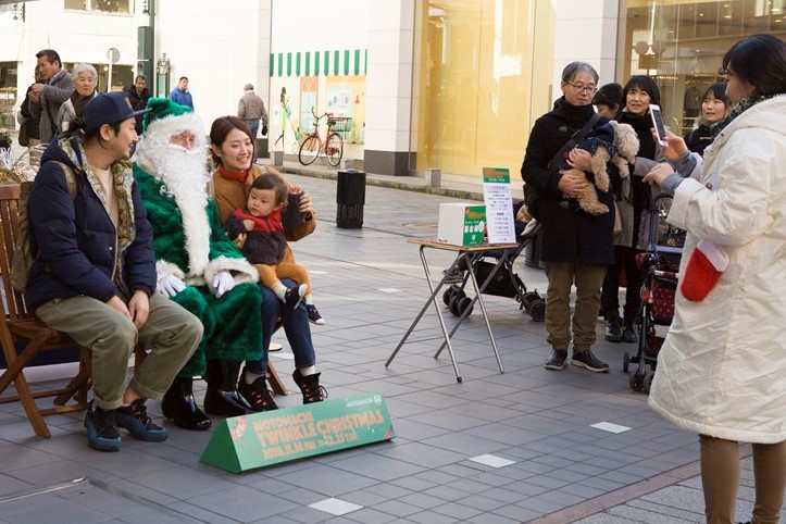 12/14、12/15、12/21、12/22、12/23、12/24には、グリーンサンタが横浜元町にやってくる! 記念撮影をするとチャリティ募金ができる。ぜひファミリーで参加しよう!