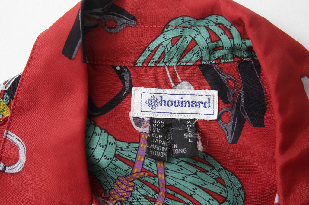 シュイナード・イクイップメント社のタグを備えた、1980年代半ばの名作にして1986年に正式スタートするパタロハの原点となった一着。カラビナやピッケルなど5種類のクライミングギアを散りばめたアイデアは、当時の共同経営者であり、かつて美術教師をしていたこともあるイヴァンの妻マリンダ・シュイナードによるものだったと言われ、赤のほか、ターコイズ、ブルー、ブラックの全4種が同柄で確認されている。