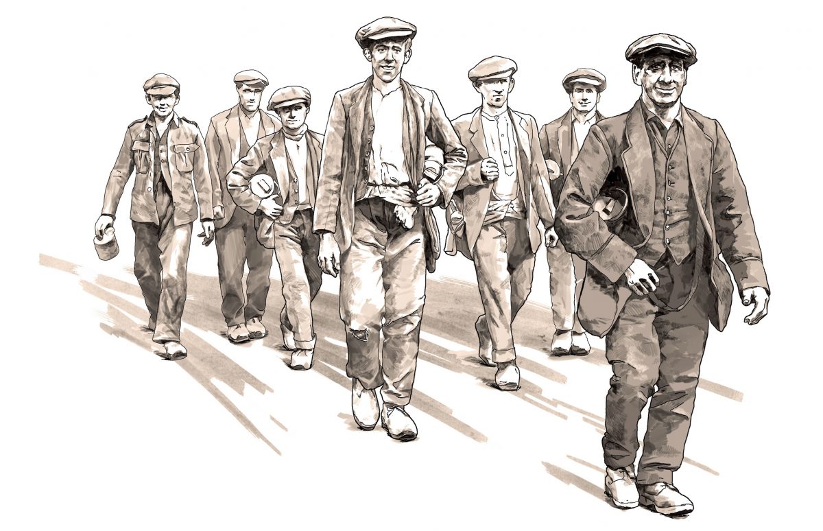毎日、同じ服で、ハードな肉体労働。身体よりも先に、身に着けている衣服がボロボロになってしまうことは、容易に察しが付く。当時の労働者にとって、切実に欲しいものは、金もさることながら、丈夫なワークパンツであったに違いない。