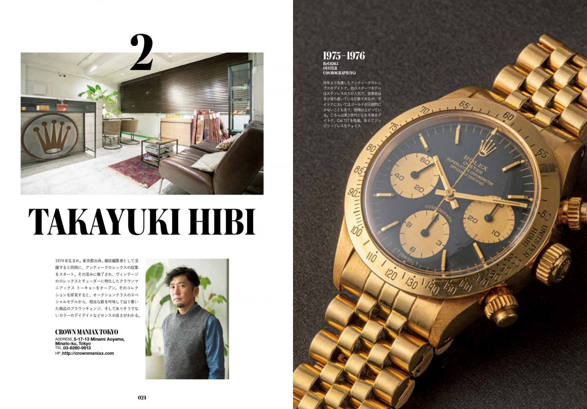 ヴィンテージカーや不動産、アートのような資産価値が、この数年でロレックスにも見出されている。特にヴィンテージモデルにおいては、世界的にその価値が確固たるものになっており、世界中に収集家が存在している。本書ではそんなコレクターや、ヴィンテージロレックス店のオーナーたちが所有するコレクションを多数掲載している。