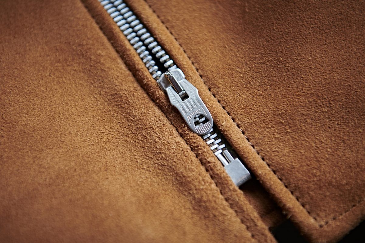で、色々と探した結果、狙いを定めているのが、このアディクトクローズのシングルライダースだ。もともとデザインの出自がバイクレース用ツナギ(の上半身)だけに、本来はハードなアイテムにカテゴライズされるジャケットだが、素材をディアスキンのスウェードに置き換えているため、グッとソフトな印象になっている。