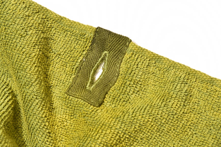 ドイツのダイスター社のLava Dyesという染料で染めたというこのタオル。Lava Dyesとはカラージーンズで使われている染料で、インディゴ染料のように、生活スタイルによって色が変化していくそうだ。