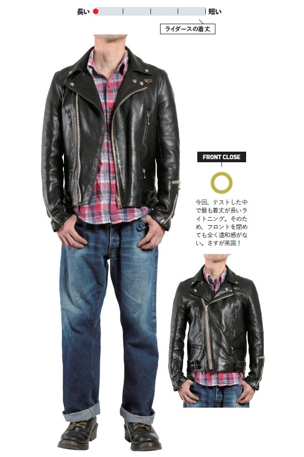 5.ダサいと思われる原因は着丈! 4つのブランドのライダースで検証する、革ジャンの正しいサイズの選び方。