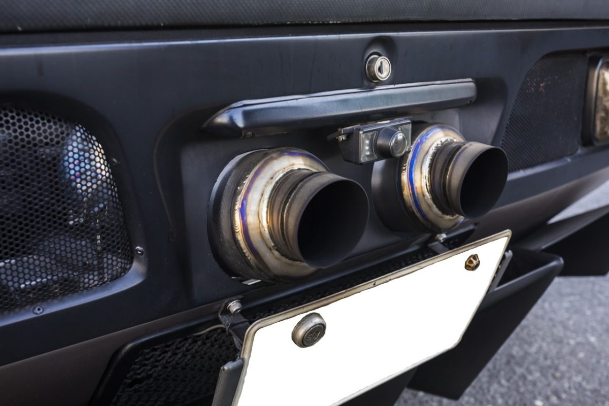 本来ナンバープレートを装着する位置からサイレンサーのエンドを出した斬新なカスタム。リスキービジネスの定番メニューになりつつあるとか。