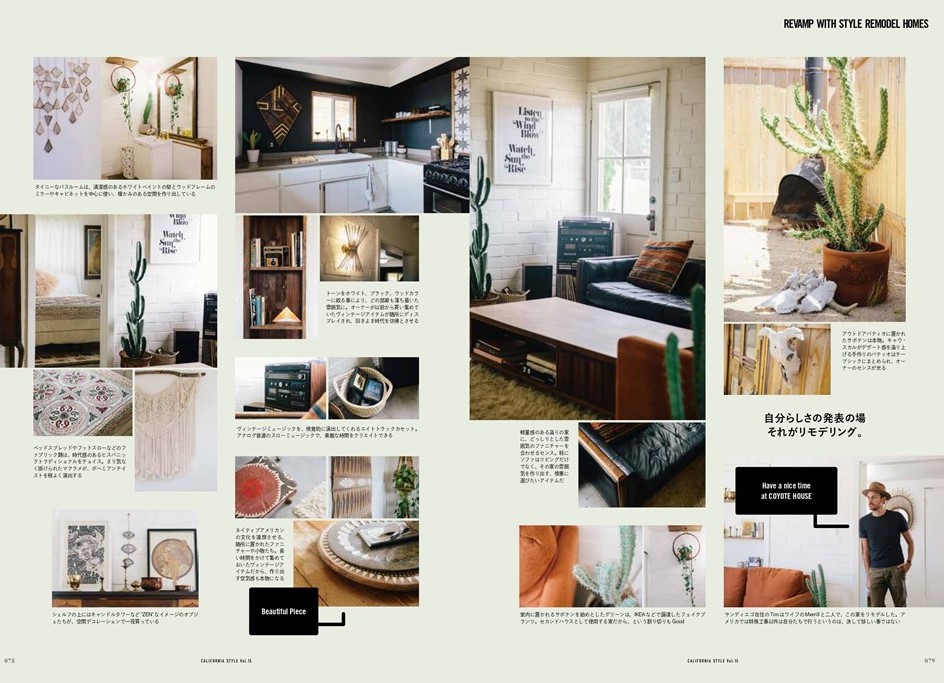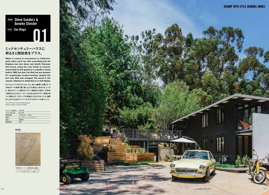 「絶景ビュー」、「Mar Vista」につづいて「REVAMP WITH STYLE REMODEL HOMES」を特集。日本では大半の家が古くなったら取り壊され、新築として建て直される事がほとんど。ところがアメリカ、特に湿度が少なく家が傷みにくいカリフォルニアでは、古くなった家は壊さずにリモデル(リノベーション)して使うという考え方が一般的。この特集ではカリフォルニア流のリモデルを経てスタイルを刷新した、素敵な家たちを紹介。