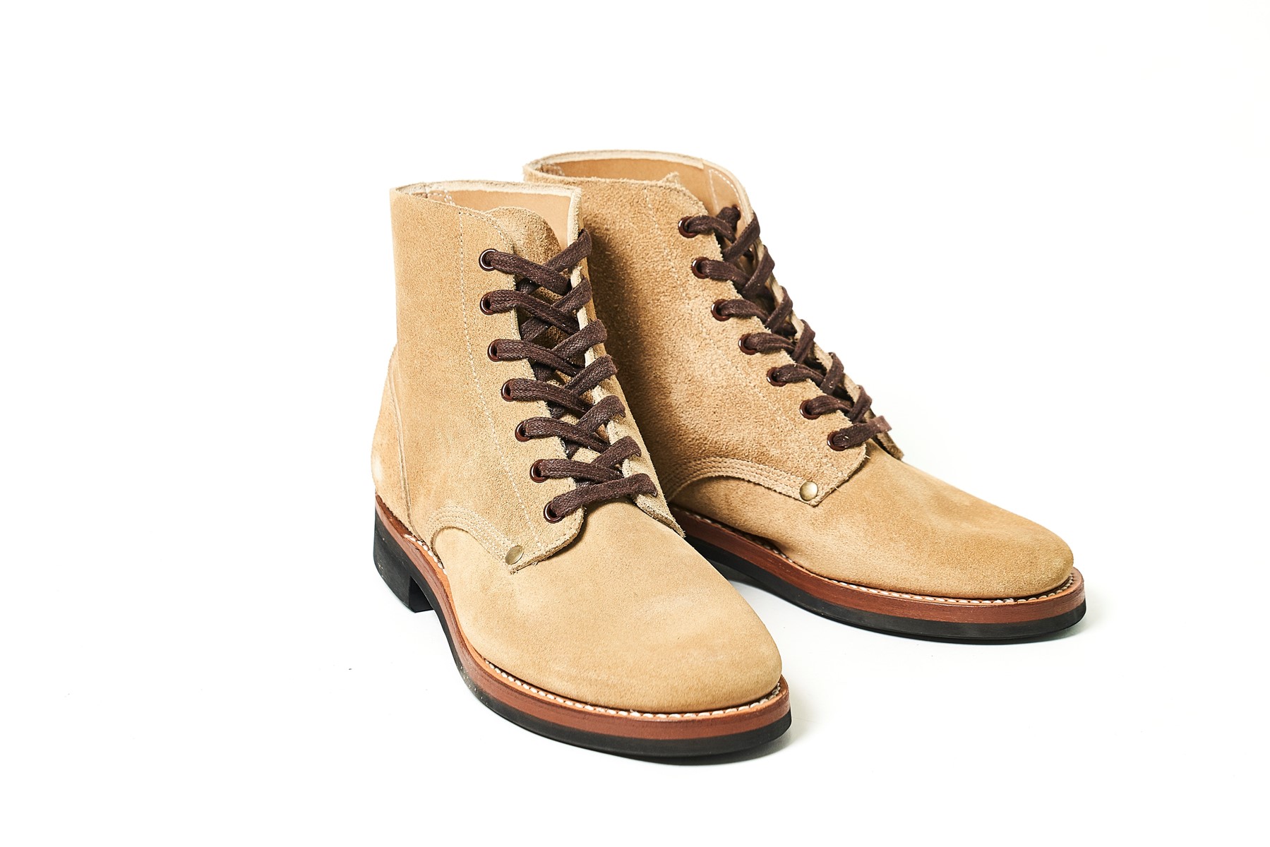 中国南部の工房で6人の職人のハンドメイドによって生み出されるブーツブランド。世界中のブーツを研究し続けてきた工房責任者兼職人のもと、最も難易度の高い製法とされるハンドソーンウェルテッド製法を得意とする。こちらは“デビルドッグ” として恐れられたアメリカ海兵隊が1952年に使用していたブーツのラストを原型に製作。6万9630円(LEATHERPORT TEL0476-97-0288)