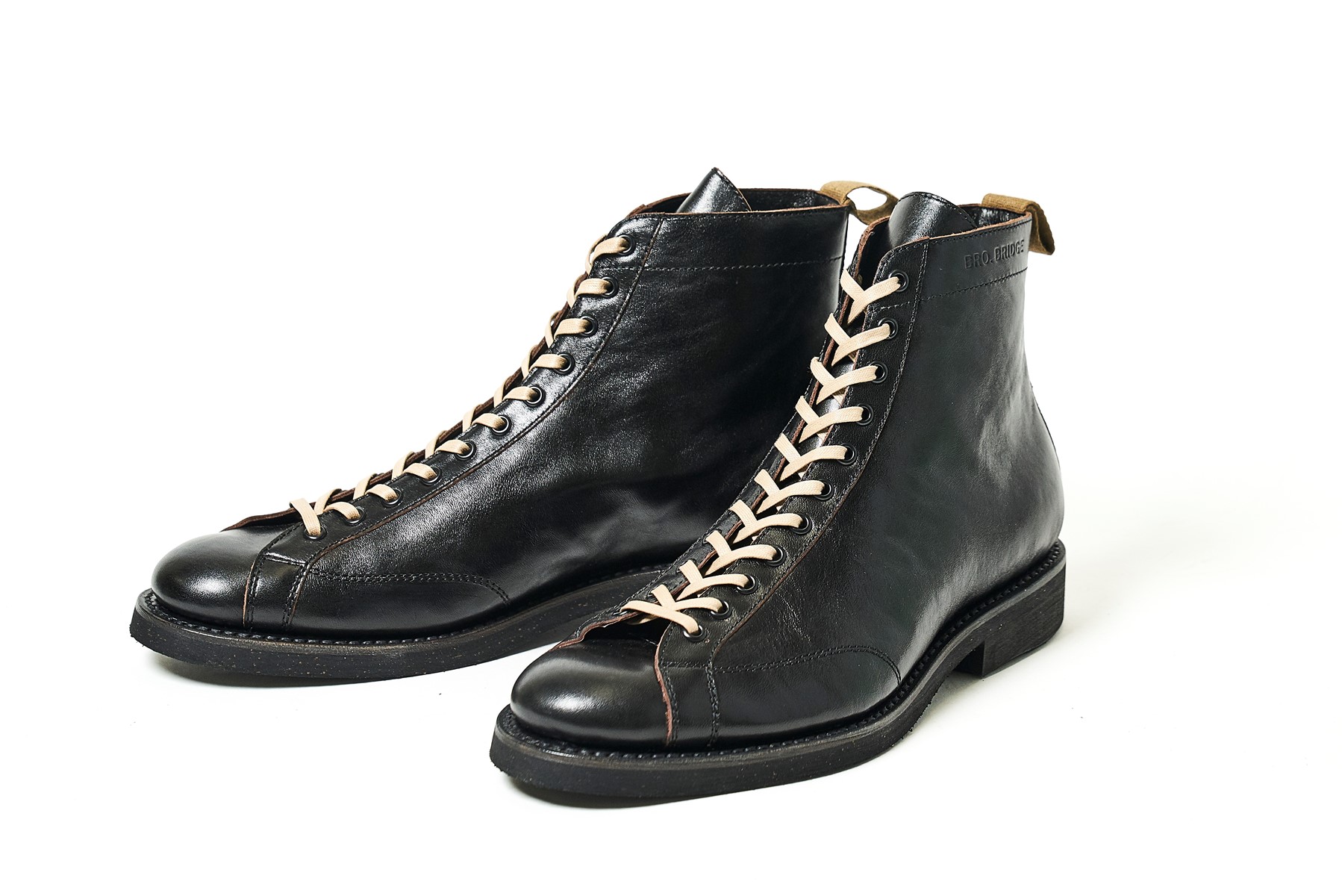 日本の職人によるブーツブランド。素材や製法はもちろん、木型から製作するほか、人間工学に基づき設計した内部パーツを採用するなど、日本人の足にフィットする専用設計。ヘンリーはヴィンテージのトレーニングシューズをベースにミリタリーラストで再構築。アッパーにはA-2でも使用されたラッカー仕上げのホースハイドを使用する。5万3900円(ブラザーブリッジトウキョウ TEL03-6802-7992)