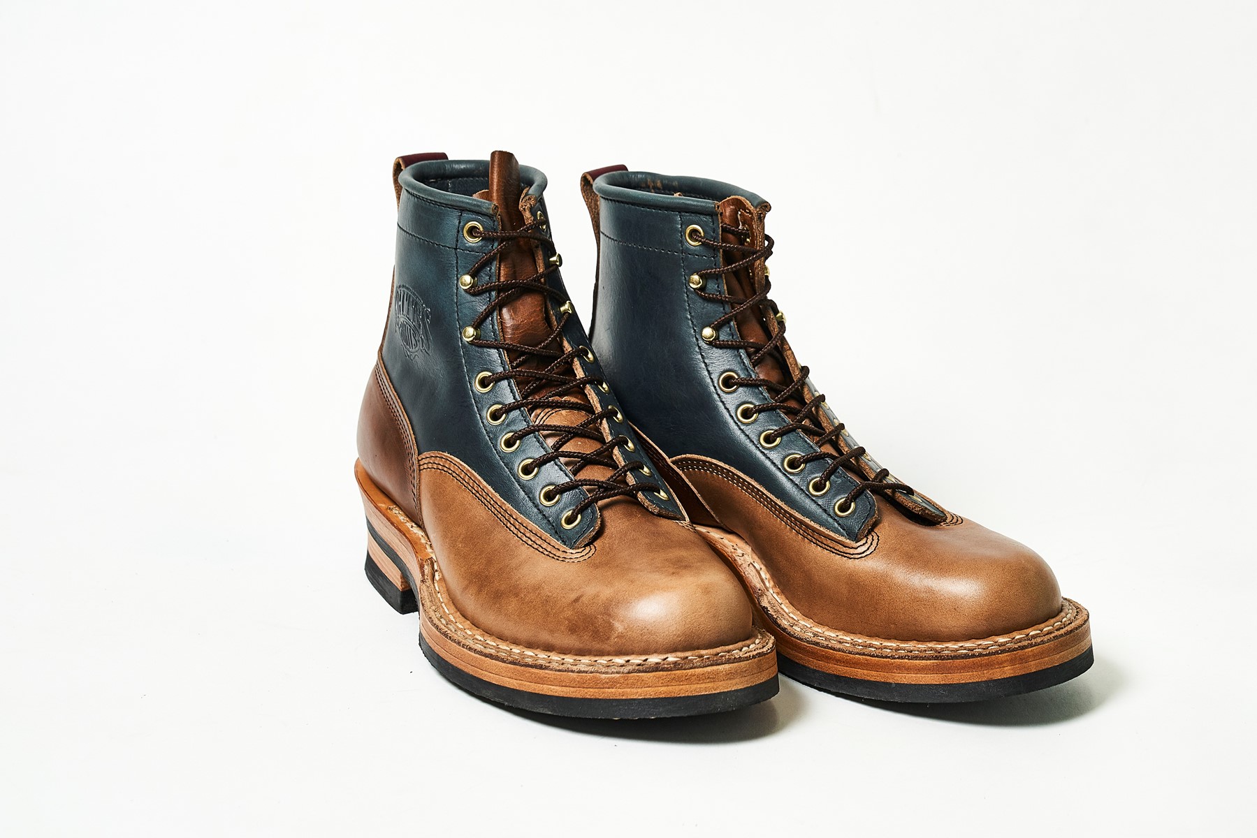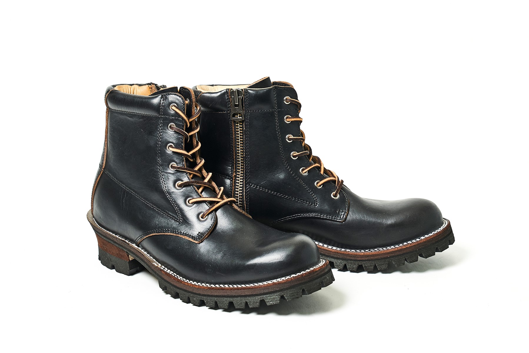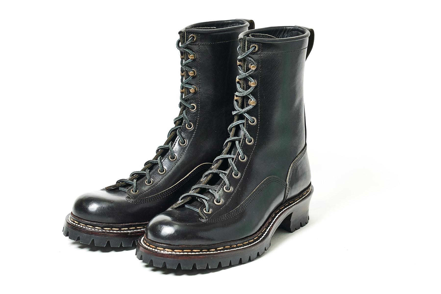 道具(ギア)として長く愛用できるシューズを目指して立ち上げられたパターンオーダー専門のワークブーツブランド。3㎜以上の厚みのあるレザーを厳選し、堅牢性に優れることで知られる登山靴に採用されるノルウェージャン製法で製作される。レースアップやエンジニアもあるが、こちらはロガーブーツ。もちろん一点物だ。6万5000円〜。(ギアレザー TEL090-3544-5235)
