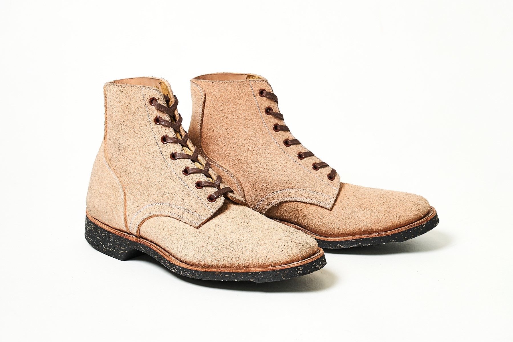 ワークブーツのリペア工房として知られるブラスがリペアで培った技術と経験を生かして作るオリジナルブーツブランド。木型のデザインから縫製、仕上げにいたるまですべて自社工房で行っている。ヴィンテージのワークブーツの雰囲気をデザインベースに、ラフアウトレザーを採用することでコーデを選ばないカジュアルな仕上がりに。11万5000円(ブラス TEL03-6413-1290)
