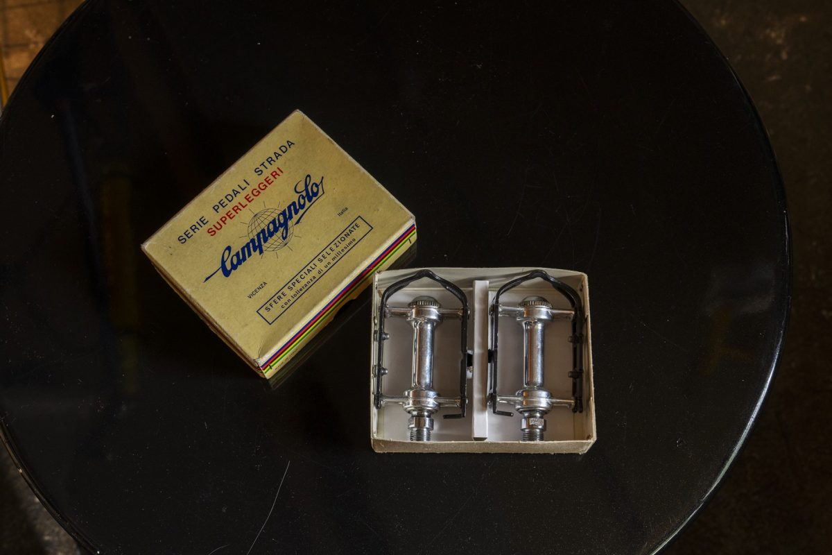 名門カンパニョーロが手掛けた「Cレコード」のペダルには、デザイン大国イタリアらしい造形美が宿る。市場評価は8万円前後と人気に比例して高い。