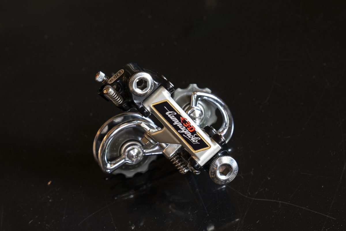 非常に希少なスイス・ICS社のリアディレーラー。カンパニョーロの「Sレコード」をチューニングして独自の境地に仕上げている。相場は10万円前後。