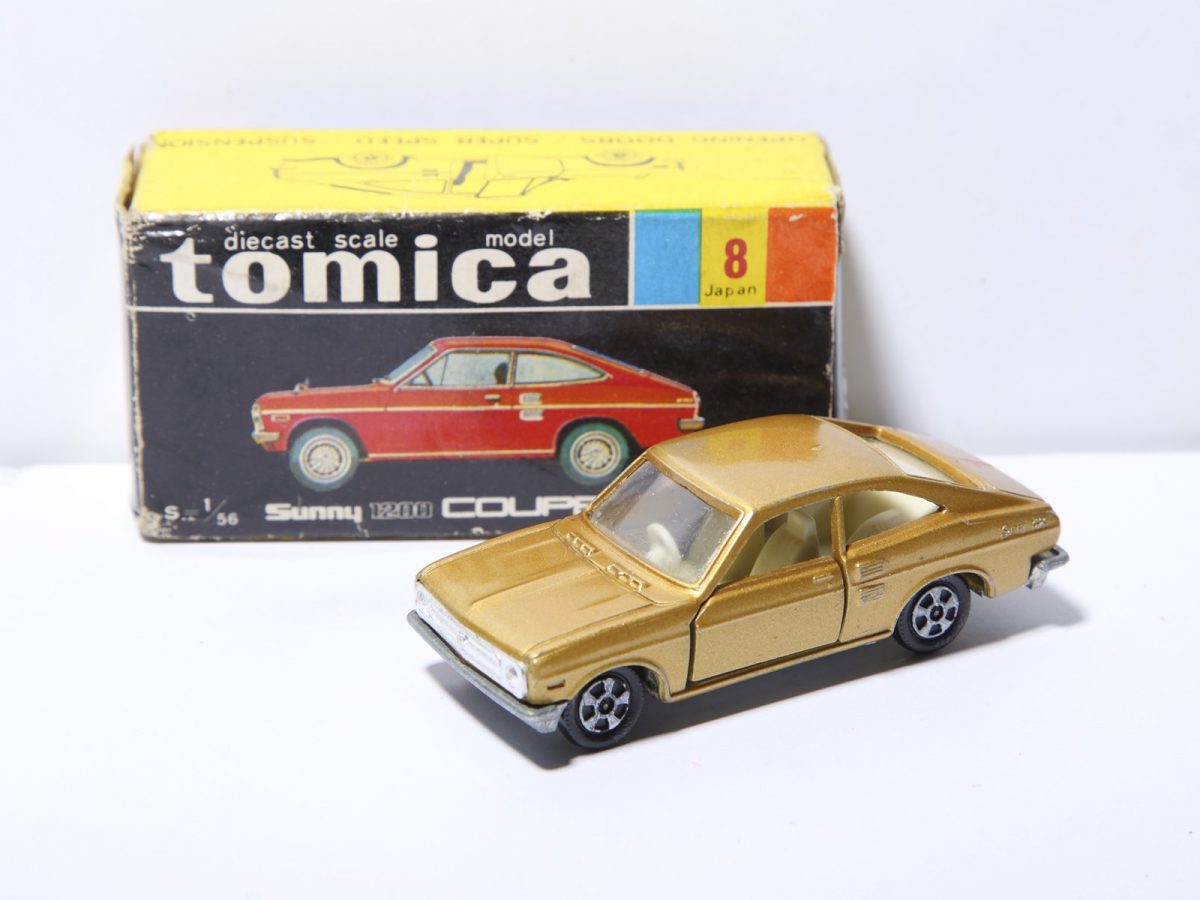 トミカ誕生の初期頃に制作された1Sホイール装着のサニー 1200。実用車のサニーと同様に数多く生産されたモデルだが、稀少性の高いゴールド色のため、現在は4万円以上の価値がある。