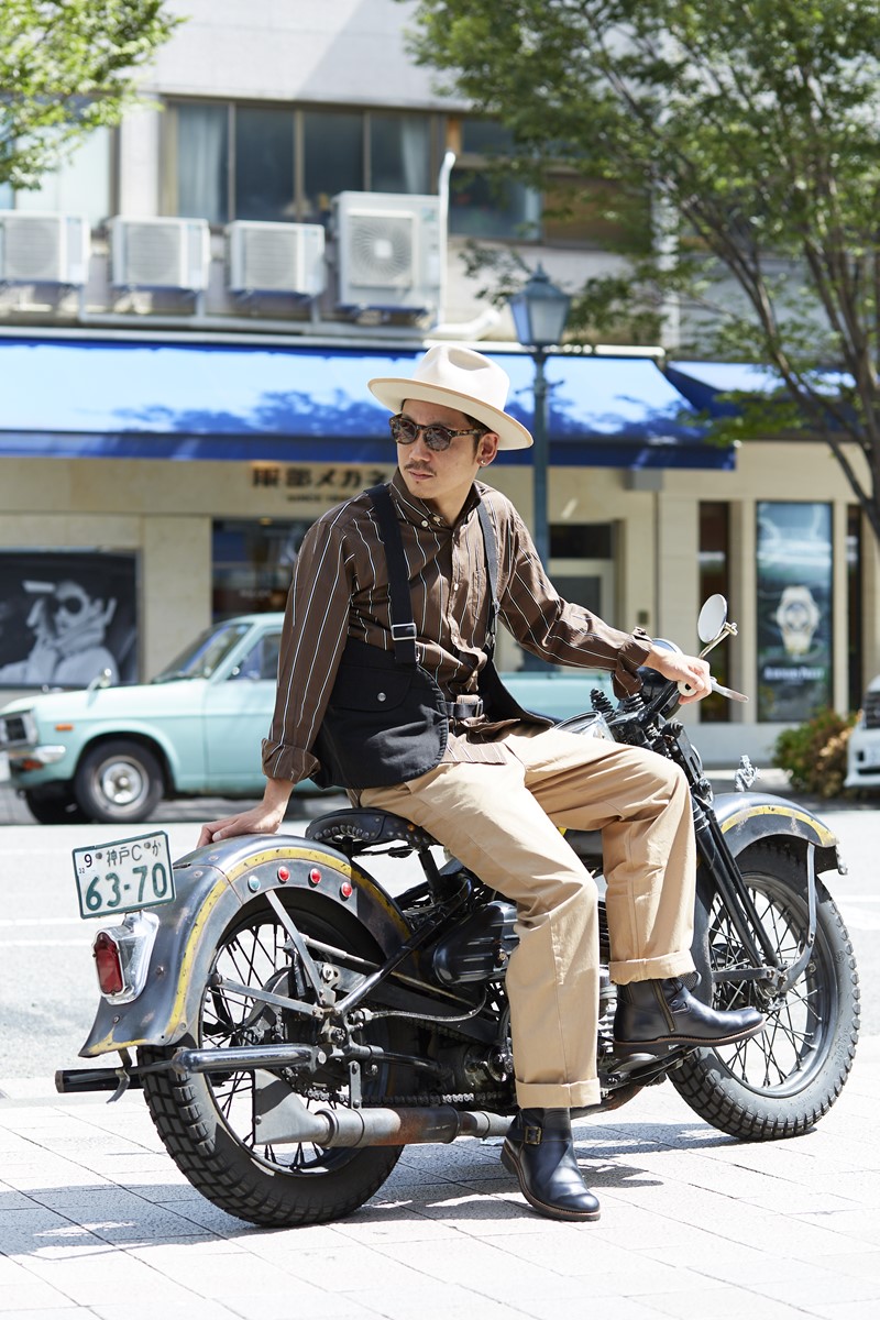 ’43年のWLのクラシカルなスタイルに合わせた上品なコーディネイト。色味をブラウン系でまとめた綺麗なスタイリングだが、ワークベストが違和感なくマッチしているのも注目したい。