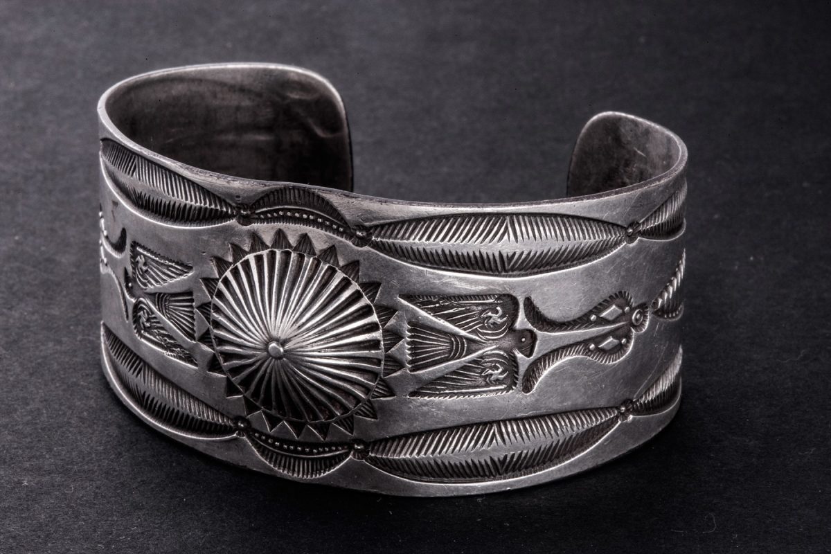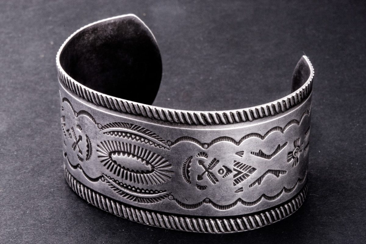 ここで銀の技術を上達させ、馬蹄などの鉄製品を作っていた一部のブラックスミス(鍛冶職人)が、シルバースミスへと変わっていく。当初は銀貨を叩いたボタンやスプーン、弓の弦から手首を守るボウガードなどの日用品が中心。そして1880年代にスレンダー・メーカー・オブ・シルバーとアツィディ・ジョンというナバホ族の職人がインディアンジュエリーを作り始めた。