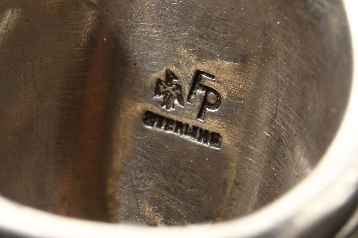 同じ年代に大きな影響力を持っていたのが、フランク・パタニア。1899年生まれのイタリア人で東海岸にて活躍した後に、サンタフェへ移住。1927年にサンダーバードショップという工房を構えた。そこで働いていたのが、ジョー・H・クィンターナやジュリアン・ロバートといった後に活躍する大物作家たちだった。