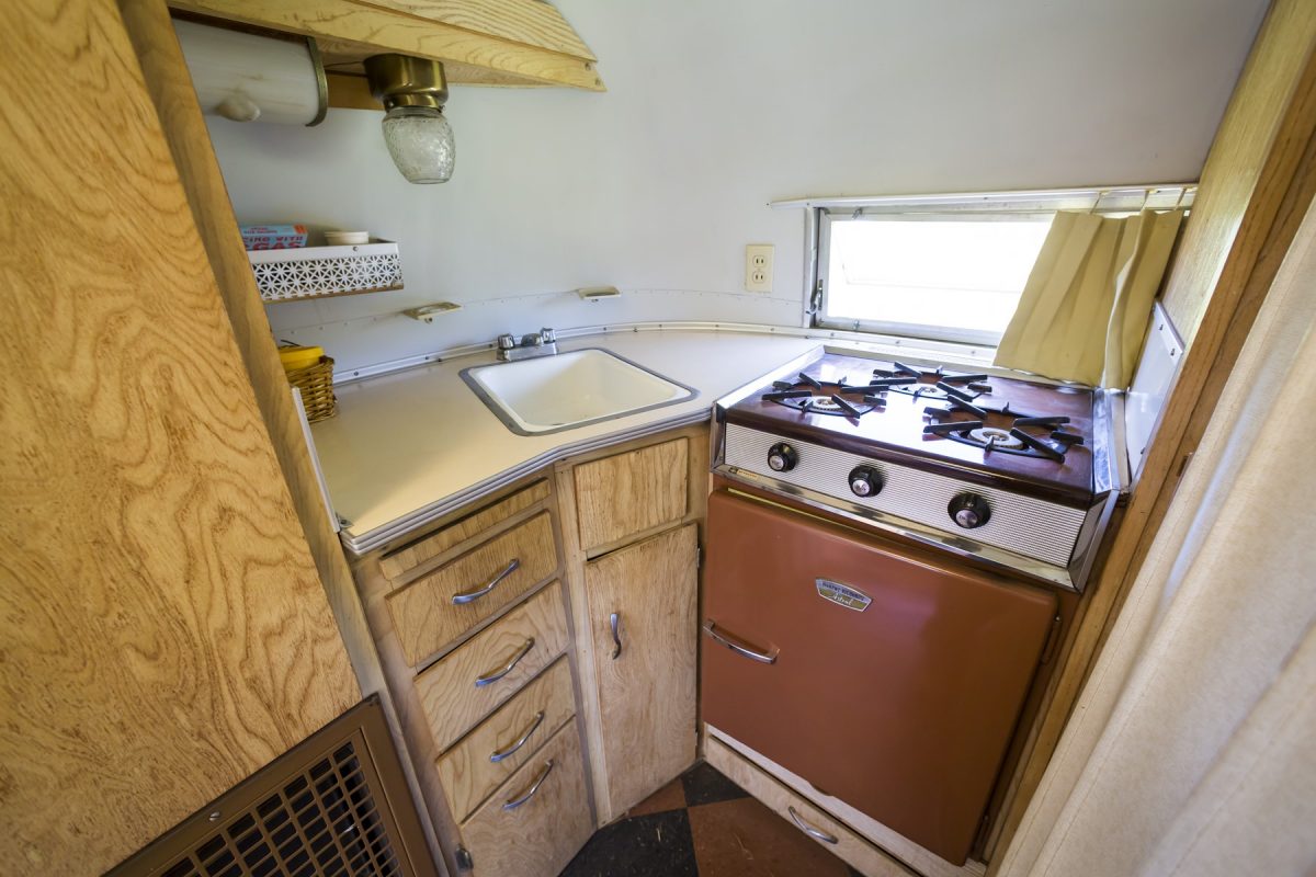 アメリカでは昔からキャンピングカーやトレーラーは自作するのが一般的だったようで、今でもキッチン回りからファブリックまでありとあらゆるパーツが揃う。外装関係も窓枠やドアノブなど(しかも年代別で)、こんなものもあるの? というパーツがリプロダクトされていたりする。つまり、オリジナルにこだわらなければホームセンターの材料で自分好みに仕上げることも可能だ。