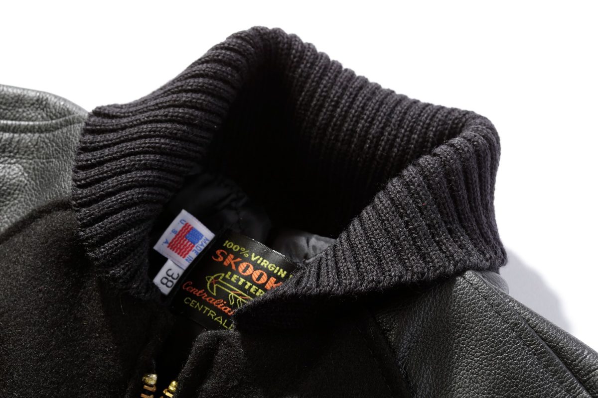 日本に現存するウール用の力織機を使って弾力のあるウール生地を使用。当時のスタジャンの雰囲気を醸し出した仕上がりになっている。