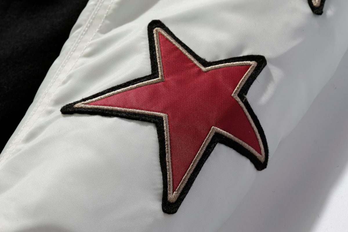 星形のワッペンは中綿ナイロンツイルで作られている。かすかにふんわりと盛り上がり、存在感のあるあしらい。