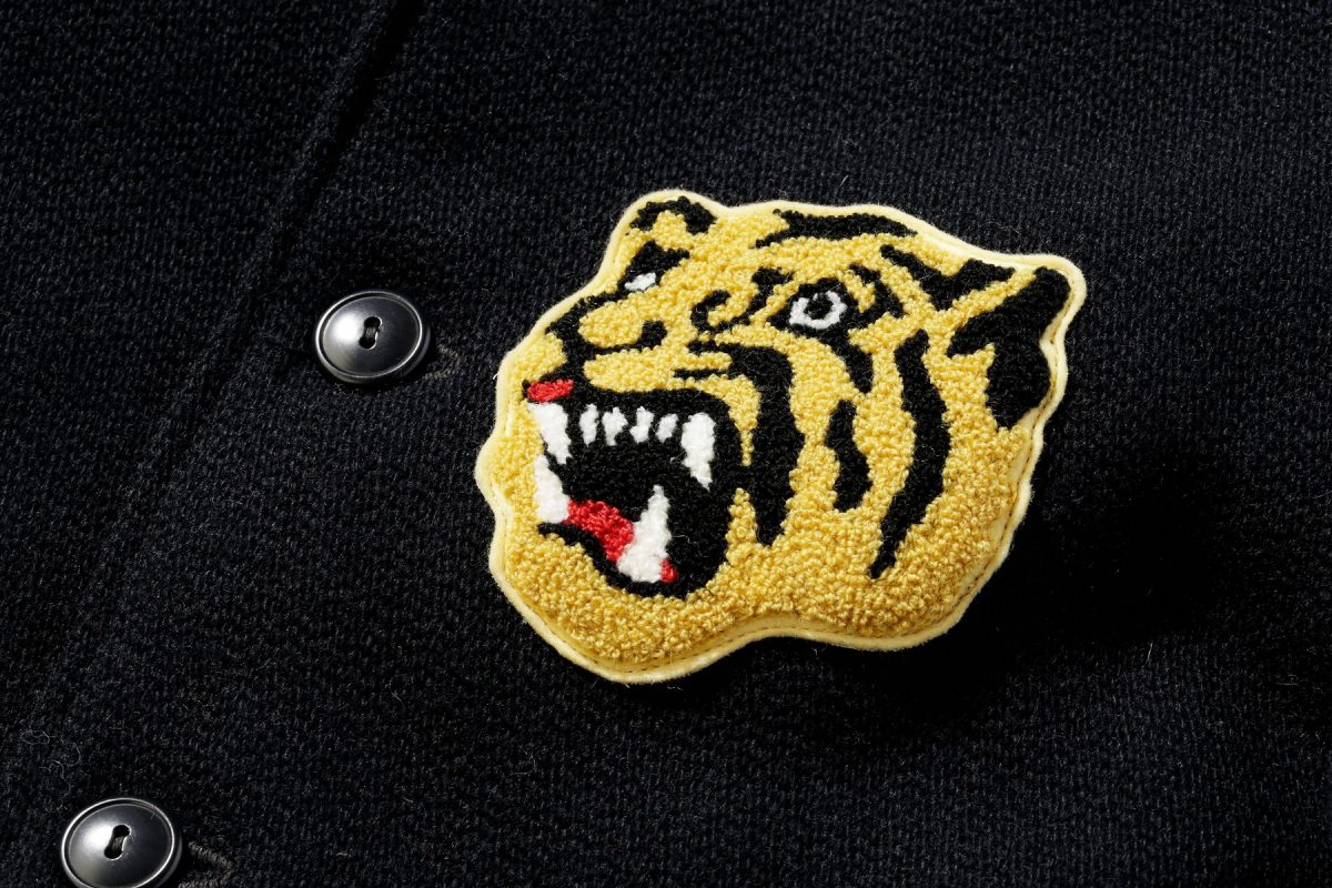 胸の刺繍は、ウエアハウスがスタジャンで使用する密なサガラ刺繍を駆使して、当時のタイガーフェイスの風合いに近づけている。