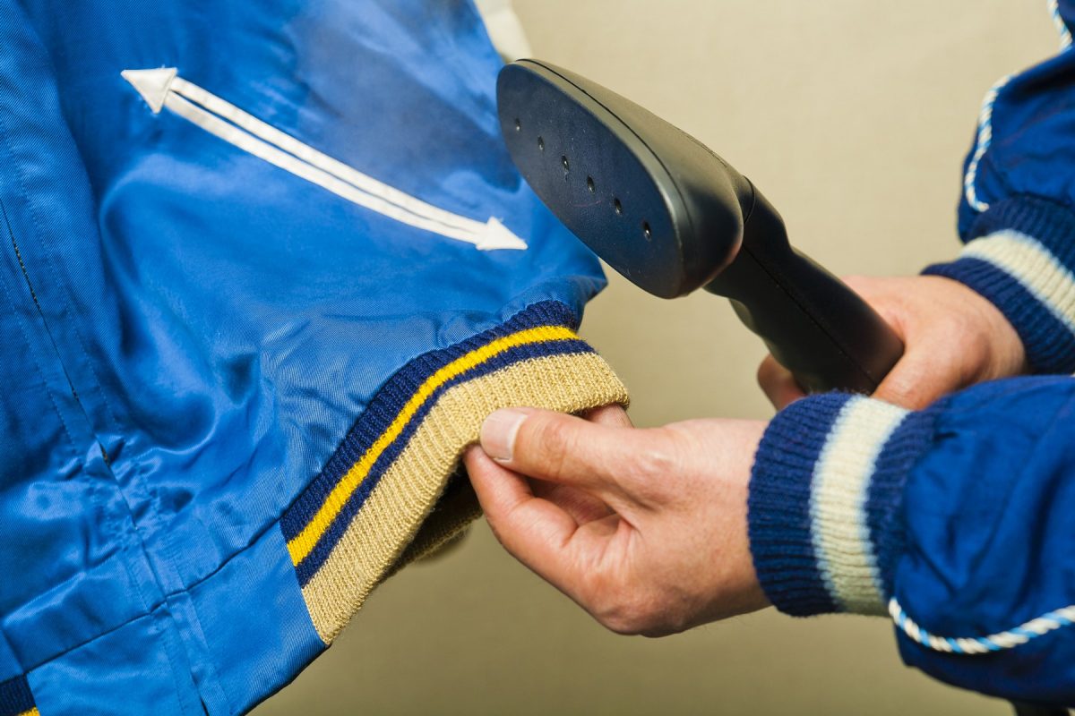 シワ部分だけでなく、全体的にスチーマーを当てていく。ただウールを使ったリブはNGだ。