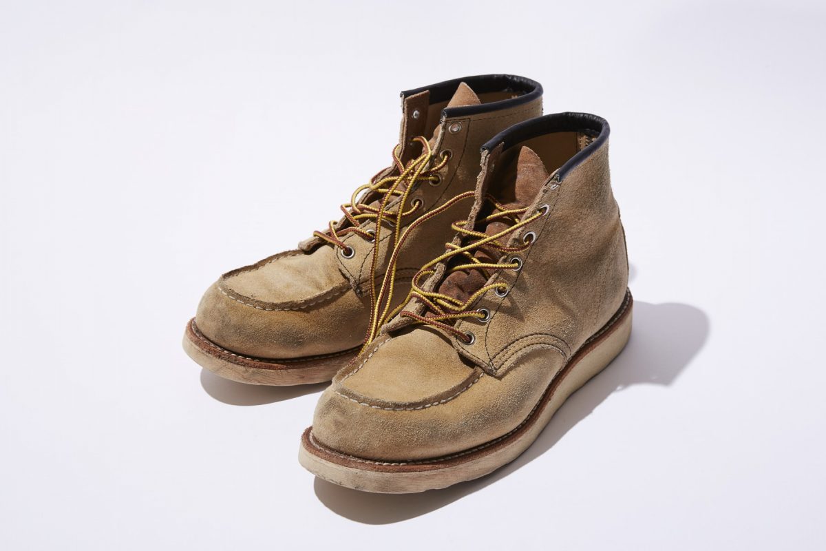 ラフアウトレザーを採用したクラシックワーク。オロラセット・カラーとは違うタフな経年変化を楽しめる一足で、無骨な佇まいが魅力。トラクションソールとも相性抜群の色合い。こちらをメンテしていく。