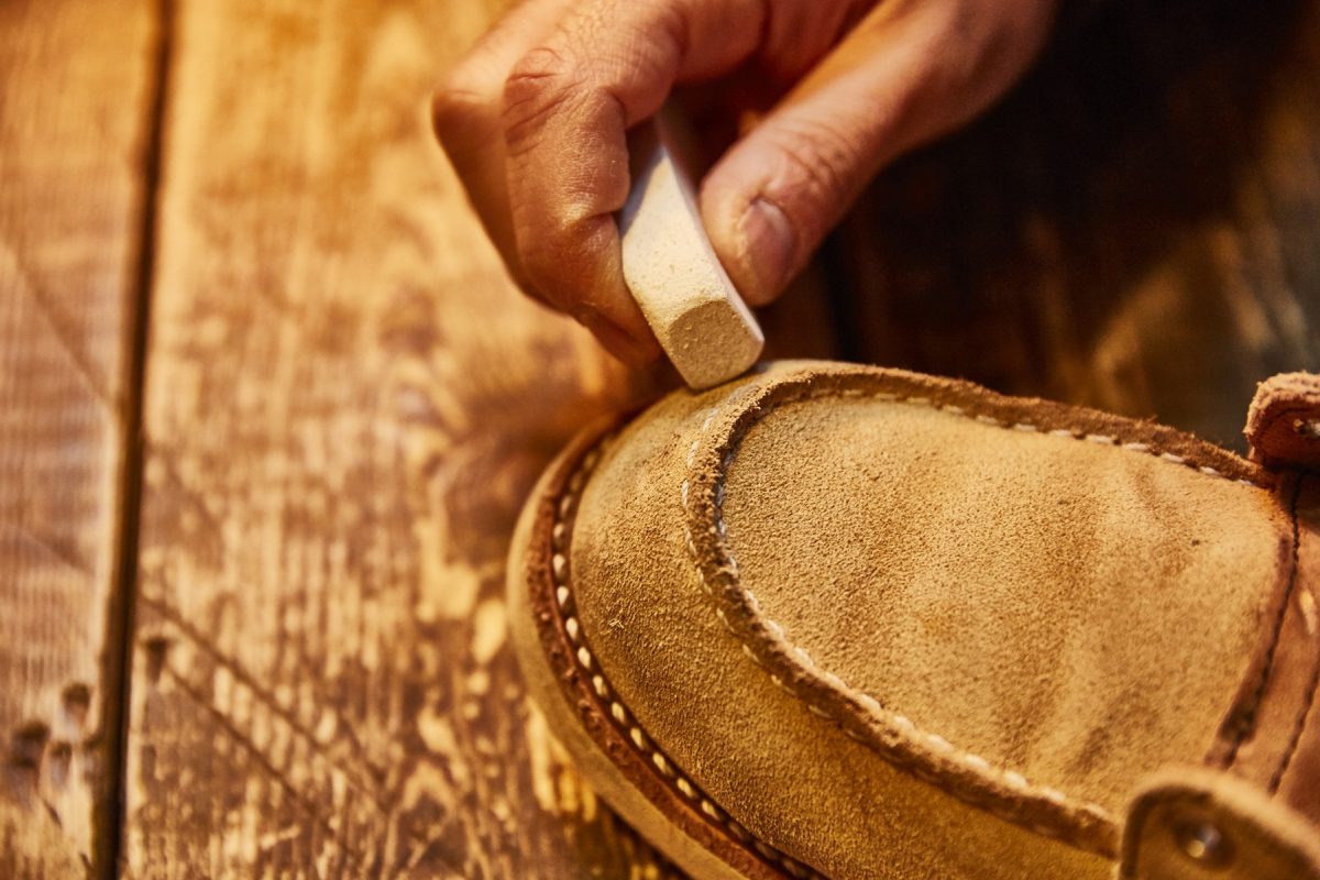 トゥ部分は汚れがひどいことがあるので、ラバーバーで擦るようにして汚れを落とす。