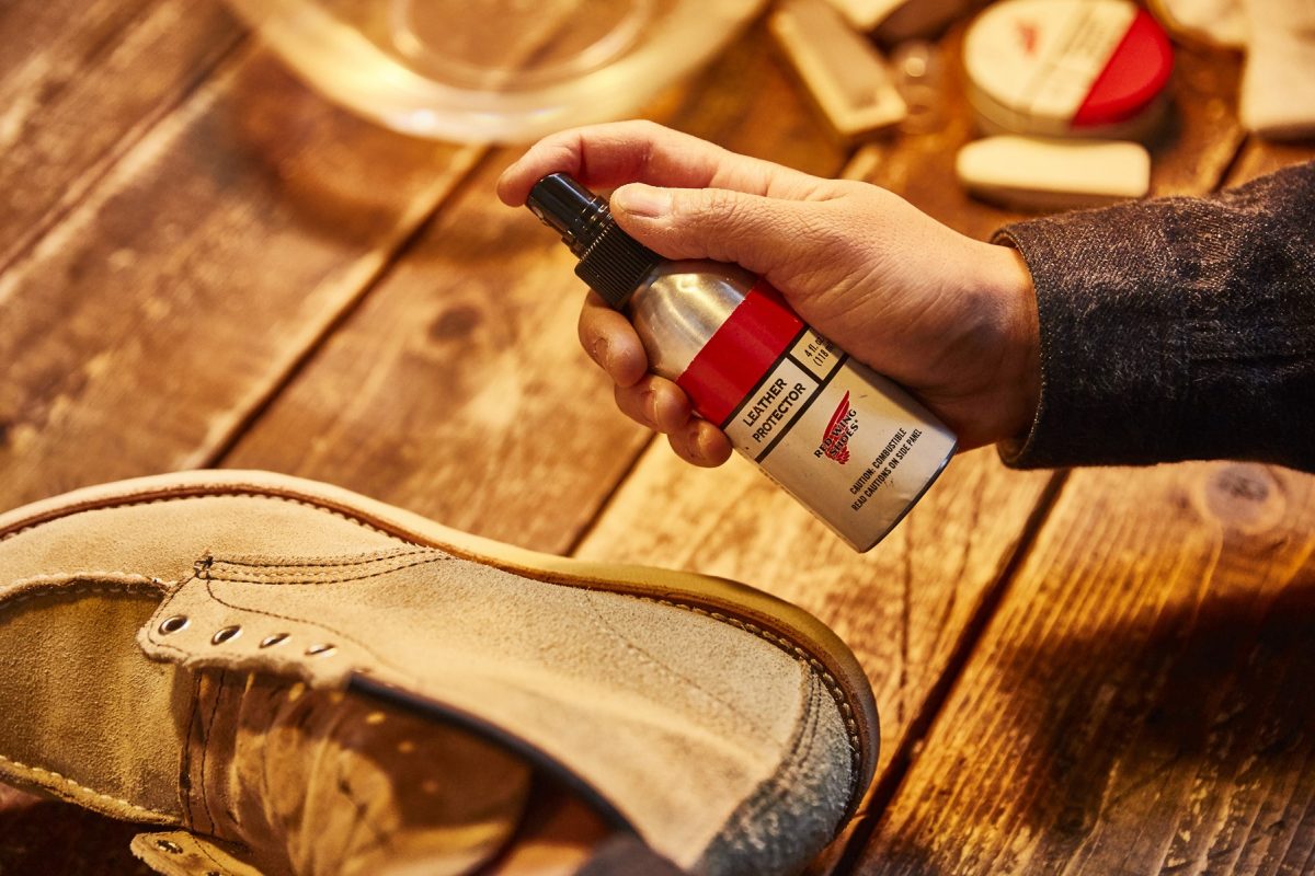 仕上げの防水スプレーは必ず履く前にする。長期保管前にかけても、あまり効果がない。