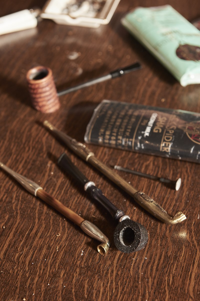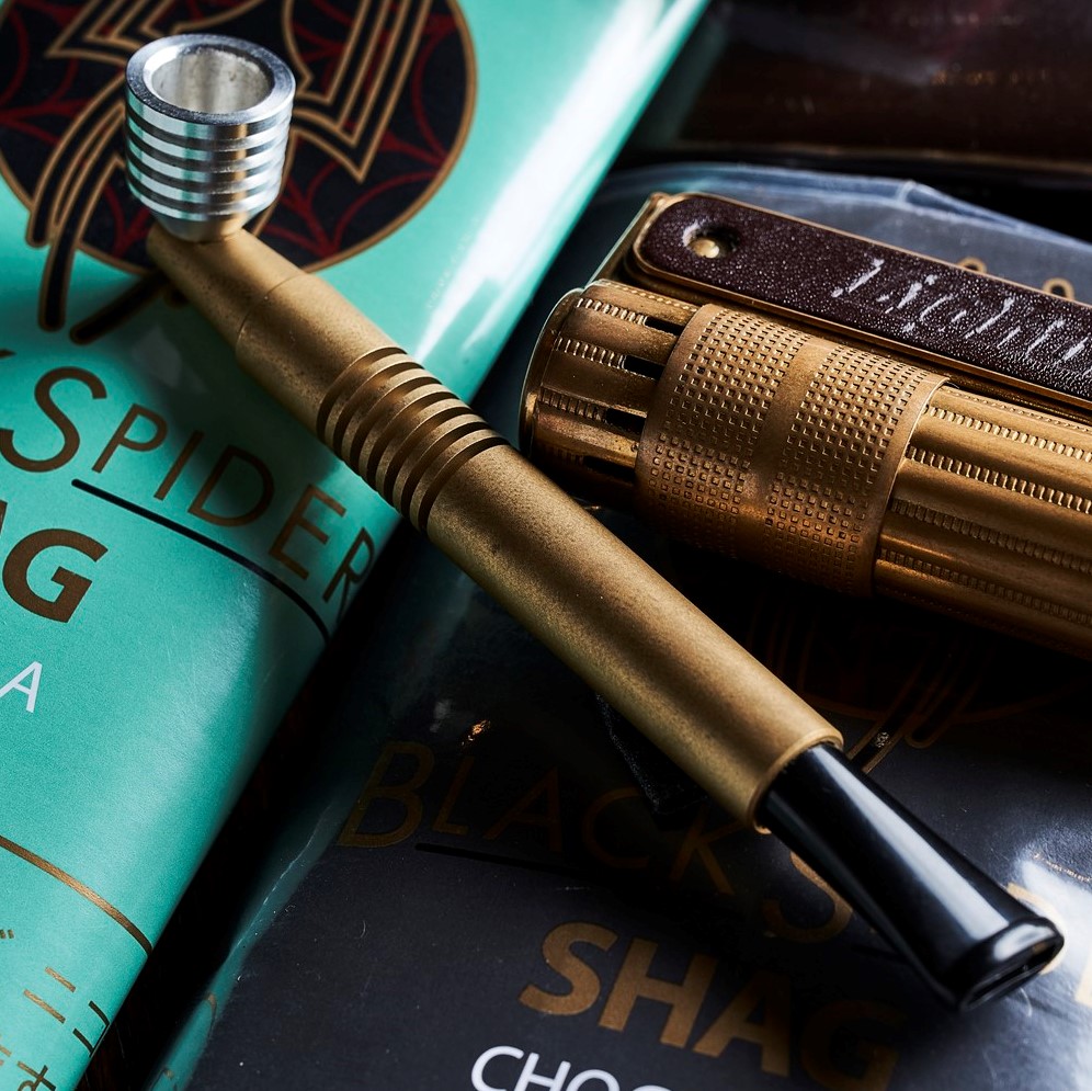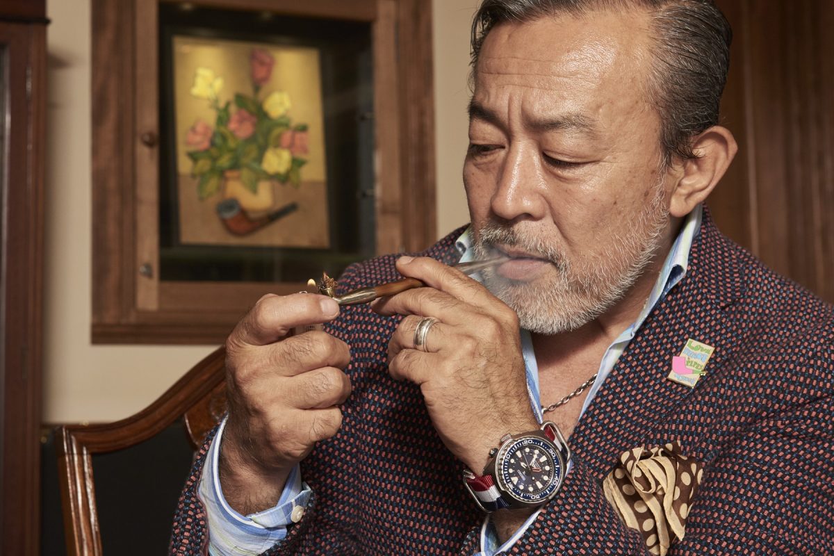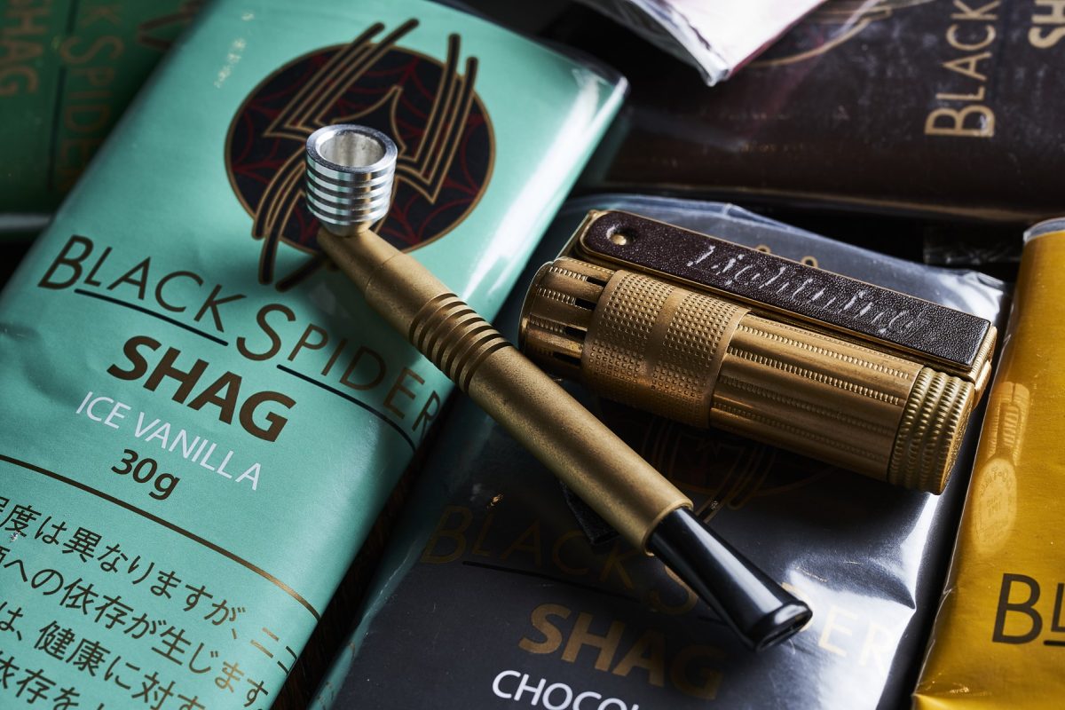 2019年3月より柘製作所の社長に就任した三井弘司さんは、世界中を飛び回り、あらゆる喫煙文化に触れてきた“スモーキング・レジェンド”だ。彼曰く「シャグをパイプで吸えば、巻く手間も省けますし、長時間吸えて経済的。おすすめですよ」ということで、まずは今人気の柘製作所のオリジナルタバコ「BLACK SPIDER」のシャグを、パイプで楽しもうという粋な企画が実現。