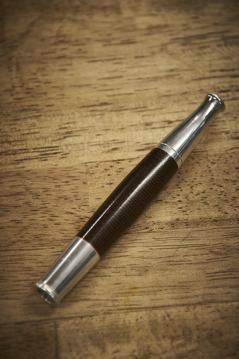 次に吸ってみたのは真鍮製。ずしりと重みもあり、とにかくモノとしてカッコいい。おまけに熱くない。「真鍮だと使うほどに変化して、カッコいいですよ」と三井さん。吸ってる姿もクールだし、これはイケる!