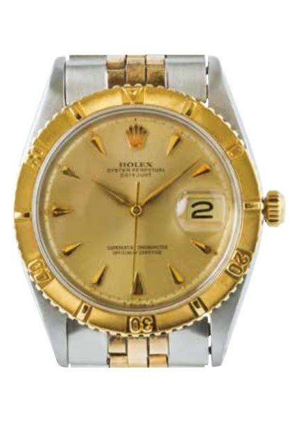 1956年、アメリカ空軍のアクロバットチーム『サンダーバーズ』の隊長が、引退記念としてデイトジャストに回転ベゼルを装備したモデルを特別にオーダーした。これがサンダーバードの始まり。ちなみにこれはモデル名でなく、あくまでニックネームだ。また、当時は’53年に誕生したターノグラフも回転ベゼルを装備していたが、こちらはサブマリーナーの原点というべきモデルだった。
