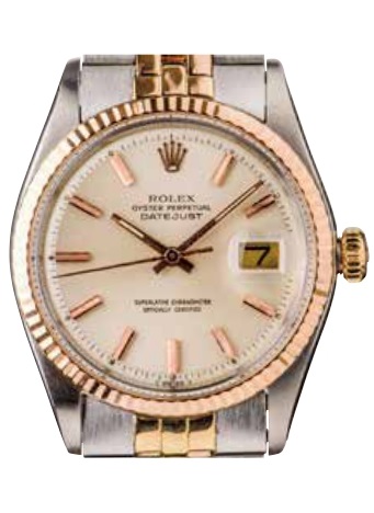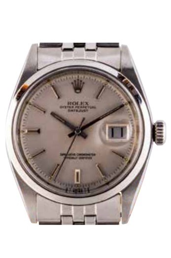 1945年の誕生以来現在も製造されるベストセラーモデル。’55年からはロレックス三大発明のひとつ、24時ジャストで日付が変わる「デイトジャスト機構」を搭載。