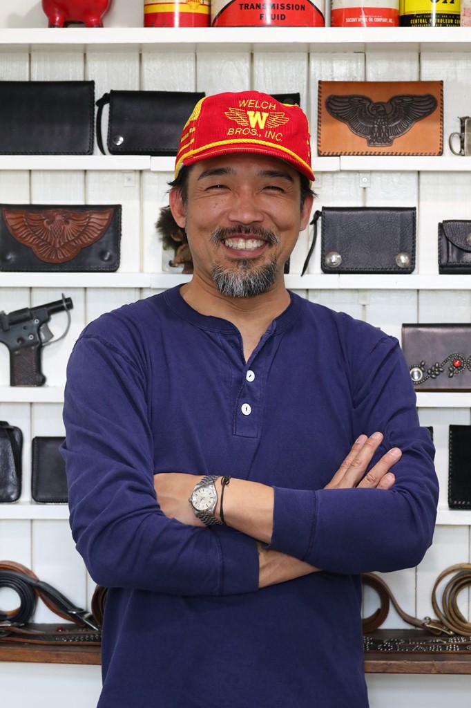 有名ブランドのOEMからオリジナルデザインまで、すべて手作業で行うファクトリーブランド「ウェイワードレザーズ」代表の高橋さん。モーターサイクルカルチャーにハマり、そこからレザーの世界へと飛び込んだだけに、バイクをはじめ、革ジャンやブーツ、アイウエアなど男の遊び道具には独自のこだわりを持つ。