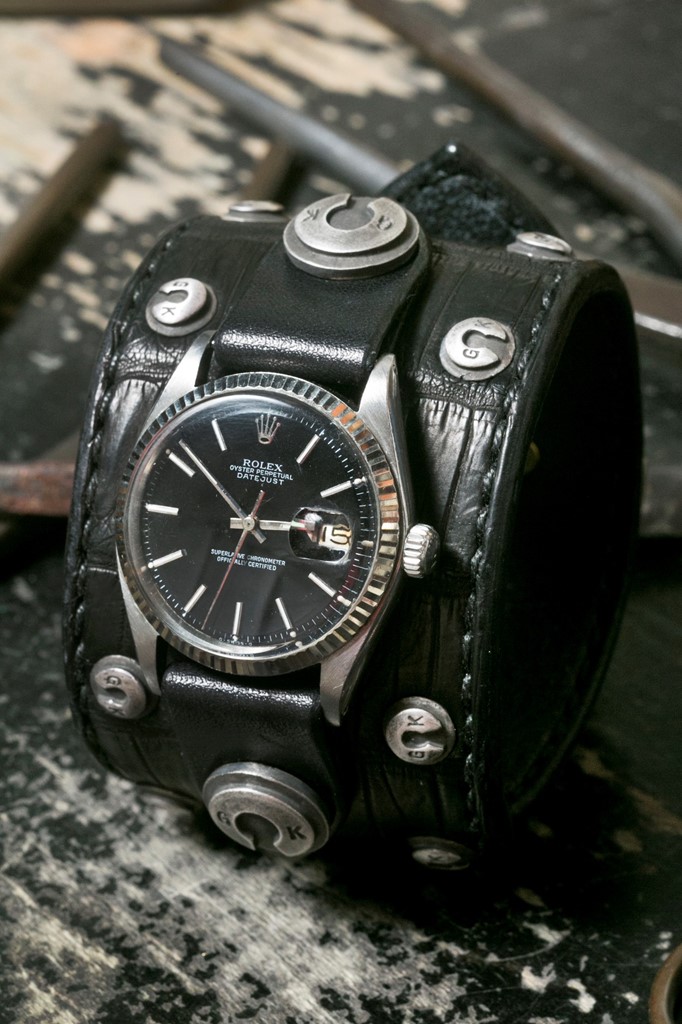 そう話すのはシルバーや真鍮を使ったアクセサリーやレザーアイテムを手がける「ゴールドキッド」代表の金子さん。最近のお気に入りは、ブレスレットをクロコダイルとシルバーで大胆にカスタマイズしたデイトジャスト。