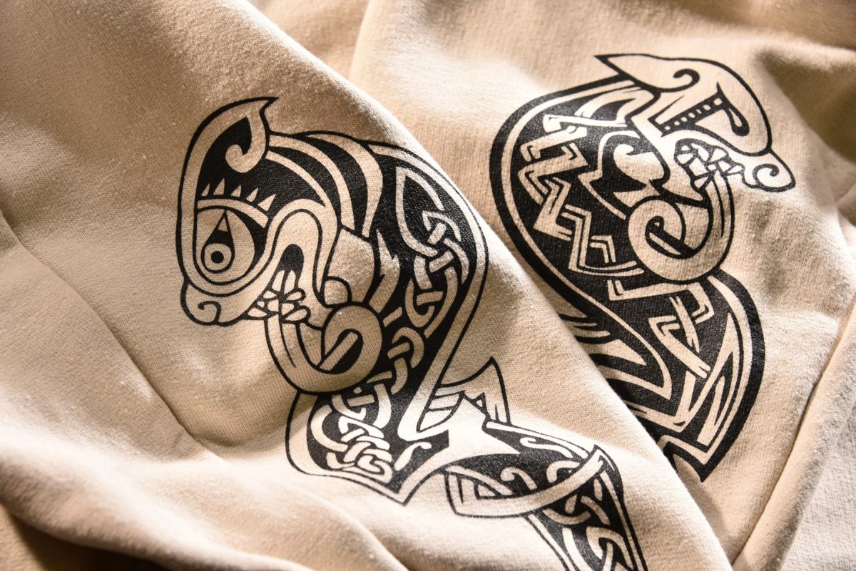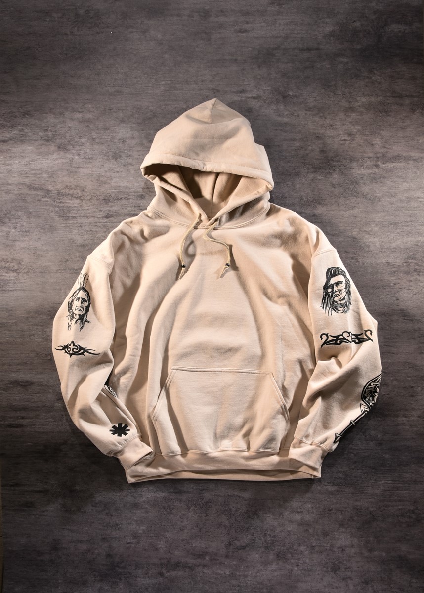 これは、レッチリのボーカル、アンソニー・キーディスのタトゥーをプリントしたもの。’96年製の全く同じプリントのTシャツ(黒ボディ)を見つけ、それをパーカに落とし込んだオリジナルだという。