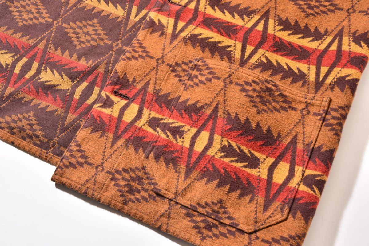 これはアメリカンカルチャーにおける柄の定番ともいえるネイティブ柄がなんといっても特徴。ネイティブアメリカンの伝統柄ならまだしも、オリジナルで柄を起こすとなると、これがまたセンスが重要になってくるもの。