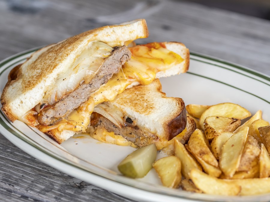 【1日目昼食】「GORDIES OLD HOUSE(ゴーディーズオールドハウス)」の炭火で焼いた肉々しいサンドウィッチ。