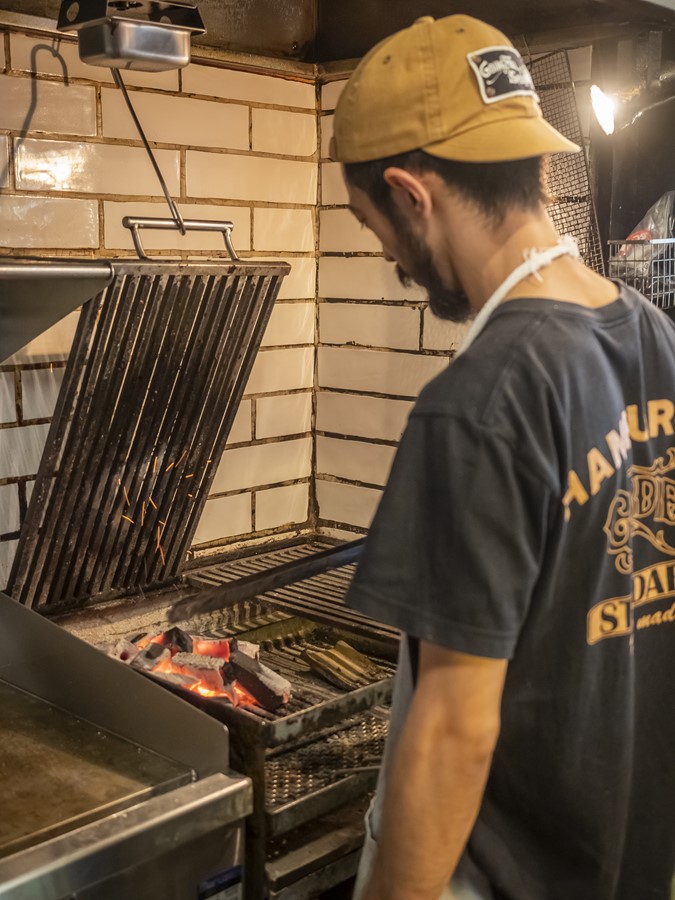 「下手でもいいから作ってみよう」というオーナーの小林さんの信念の基、店舗デザインから炭火台、メニューまで、すべて手作りされているアットホームな店。ハンバーガーやサンドウィッチに使われているニュージーランド産の超粗挽きのパテは食べ応えのある肉感が魅力。炭火でじっくりと焼き上げたパテを、自家製のバンズや食パンで挟む。そして口に入れた瞬間漂う炭のほのかな香りも食欲をそそる。肉は沖縄のソウルフード。この肉々しさは一度食べたら忘れられない!