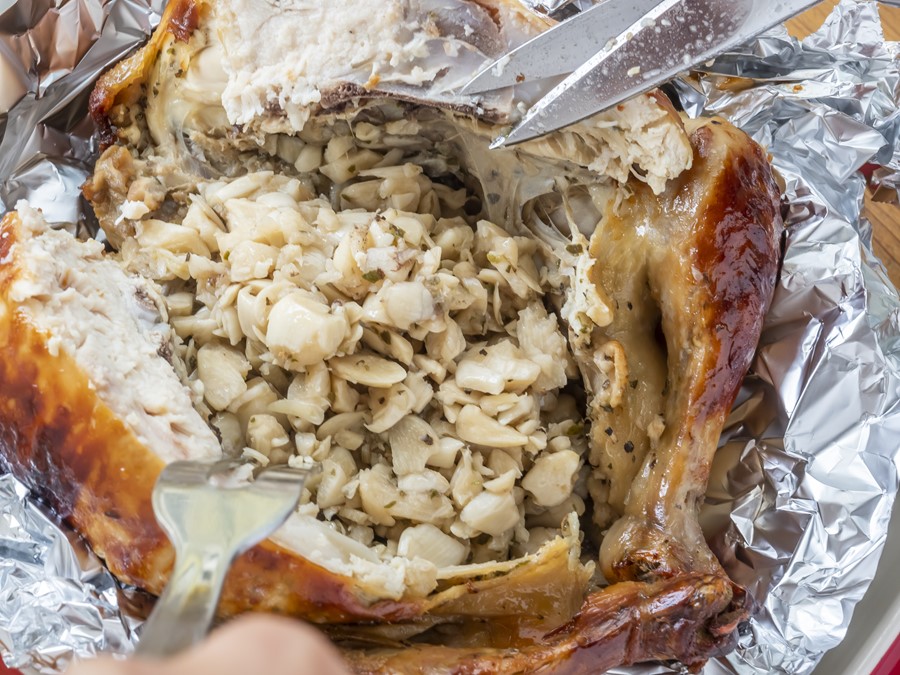 那覇市の隣にある浦添のソウルフードといえば知る人ぞ知るやんばる若鶏の丸焼き。ブエノキチンはその元祖であり、テイクアウトだけで1日200羽が売れるという超名店だ。美味しさの秘密は粗みじん切りにしたたっぷりのニンニク。酢に2日間漬けることで、ニンニクのニオイが消えるので、後に残らずさっぱりとした味わい。2時間じっくりとローストした焼き立て熱々の丸焼きをご堪能あれ。