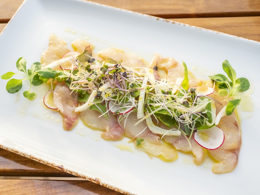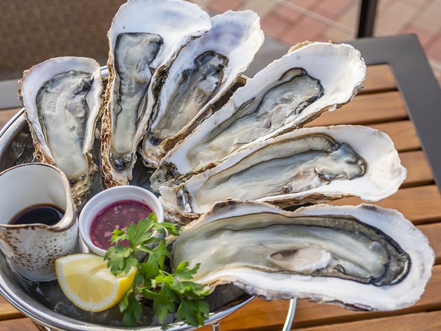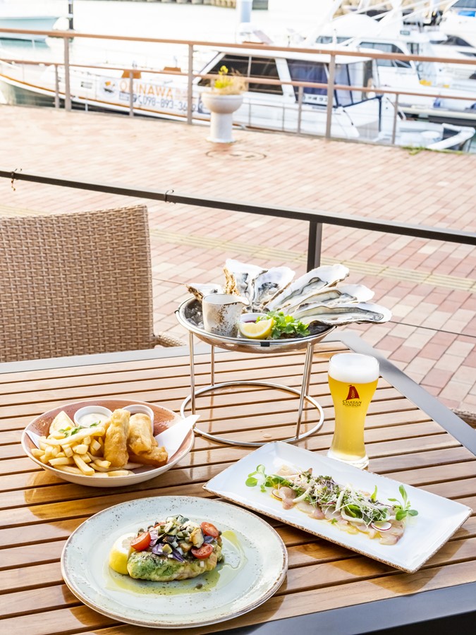 新鮮な魚介類や県産食材を沖縄テイストにアレンジしたカリフォルニアスタイルの料理が楽しめる注目の店。産地から取り寄せた大粒の生牡蠣や、衣に北谷ビールを使ったフィッシュアンドチップスなど、思わず無言で味を楽しんでしまうメニューばかり。北谷ビール2種を用意しているほか、料理と相性のよいワインも揃えている。港の絶景を楽しみながら、お酒片手に新感覚のシーフードに舌鼓を打ちたい。