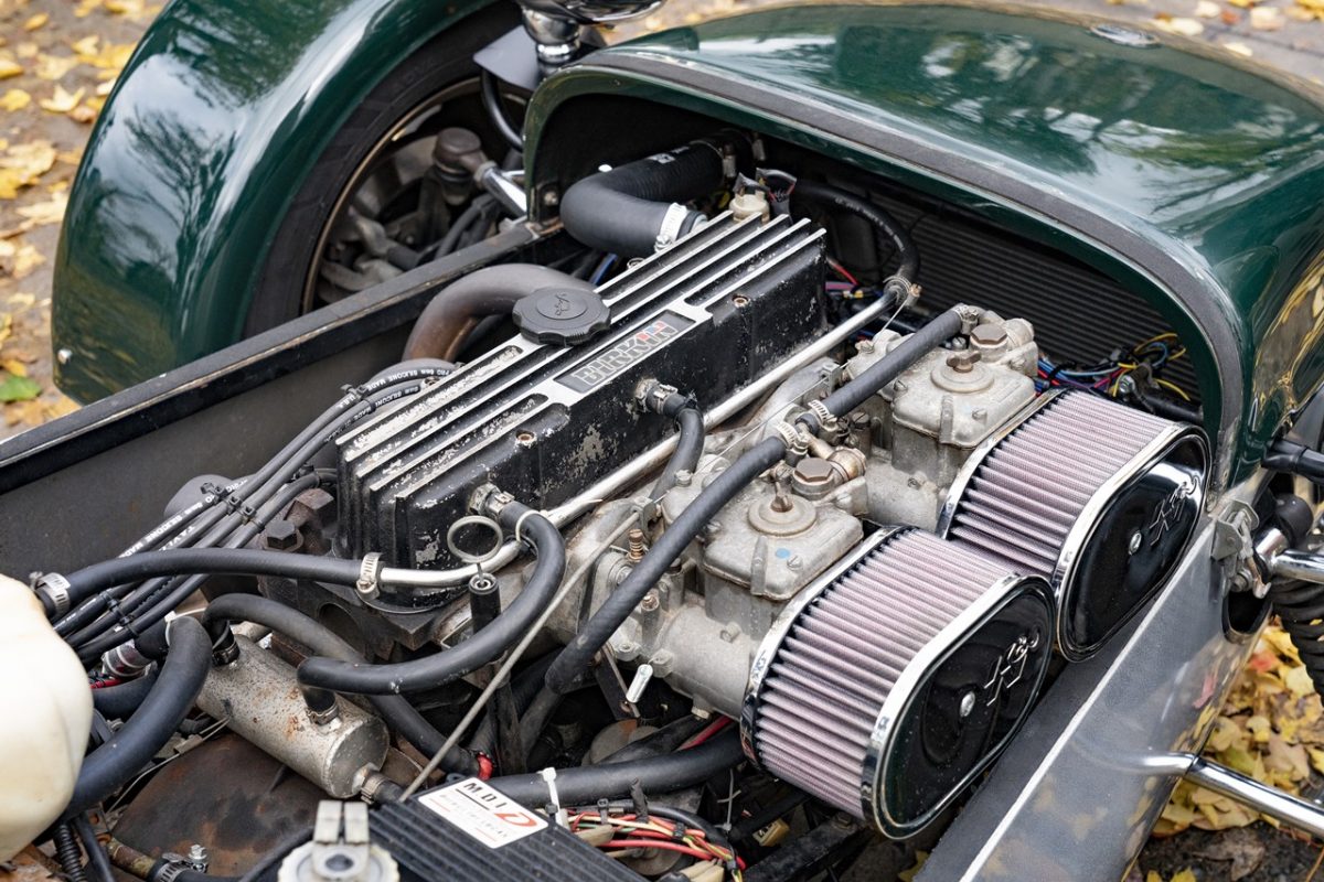 ノーズコーンにはバーキン・セブンのエンブレムバッジがデザインされている。ブリティッシュレーシンググリーンと呼ばれる独特の色合いは、陶磁器と同じ方法で焼き発色さている。