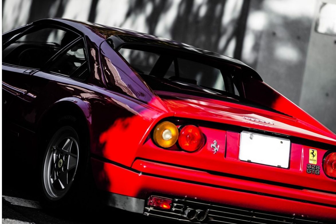 「1989 Ferrari 328」で街乗りを楽しむ。