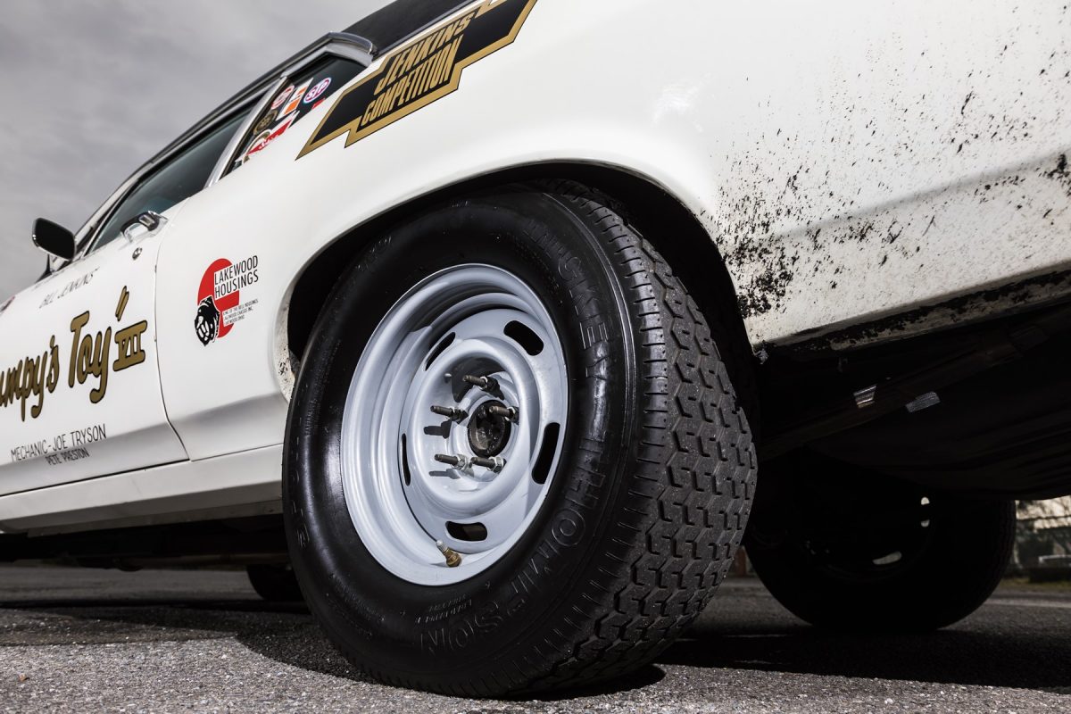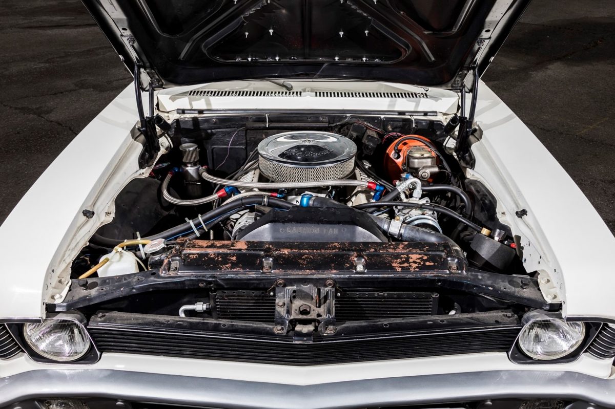 ハイコンプなスモールブロックを搭載しドラッグレースでも活躍する実力を持つ車体。