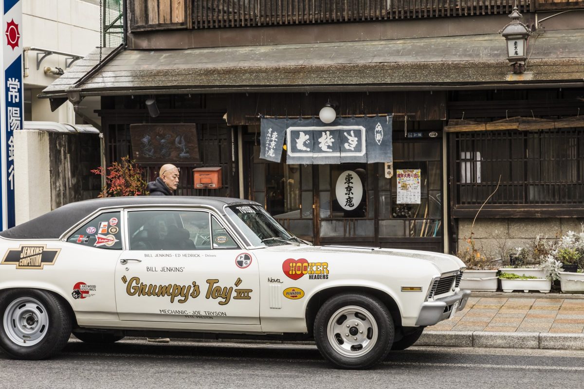 同時にスタートしてどちらが早くクォーターマイル先のゴールラインを通過するか、そんな単純ながら奥が深いアメリカ発祥の自動車競技がドラッグレースだ。当然専用にチューニングされたエンジンを搭載し、操作方法もかなり特殊。通常であれば、街乗りするのはかなりキビシイのだが、ここに紹介する小川さんは、ドラッグレースに参戦している’70年式シボレー・ノバで、普段乗りしているスゴ腕の人物だ。