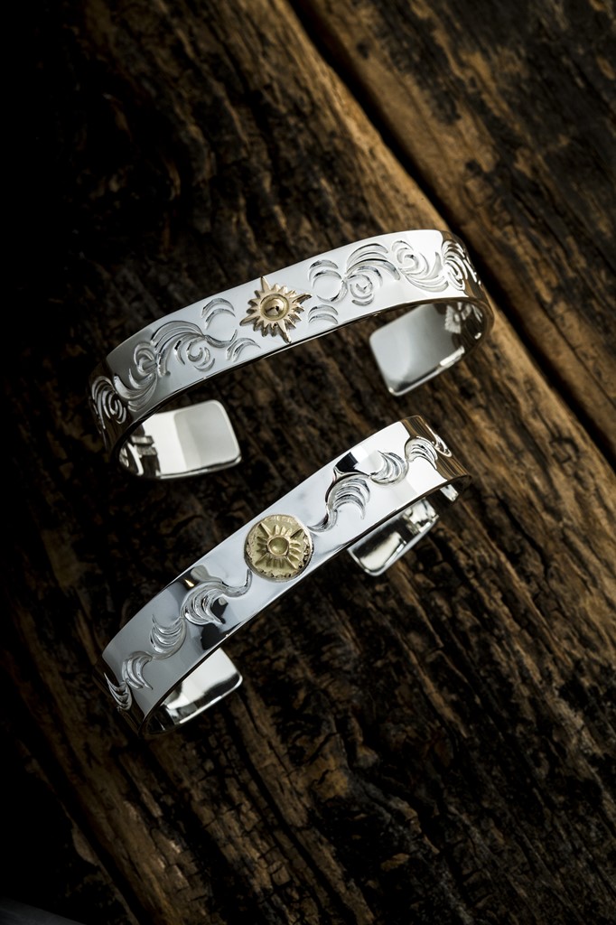 創業当時よりブランドを代表するデザインである「イーグル」「フェザー」に並び定番として確固たる人気を誇る、「太陽」や「アラベスク(唐草)」。フェザーとの組み合わせが魅力的なデザインもラインアップしており、見逃せない。