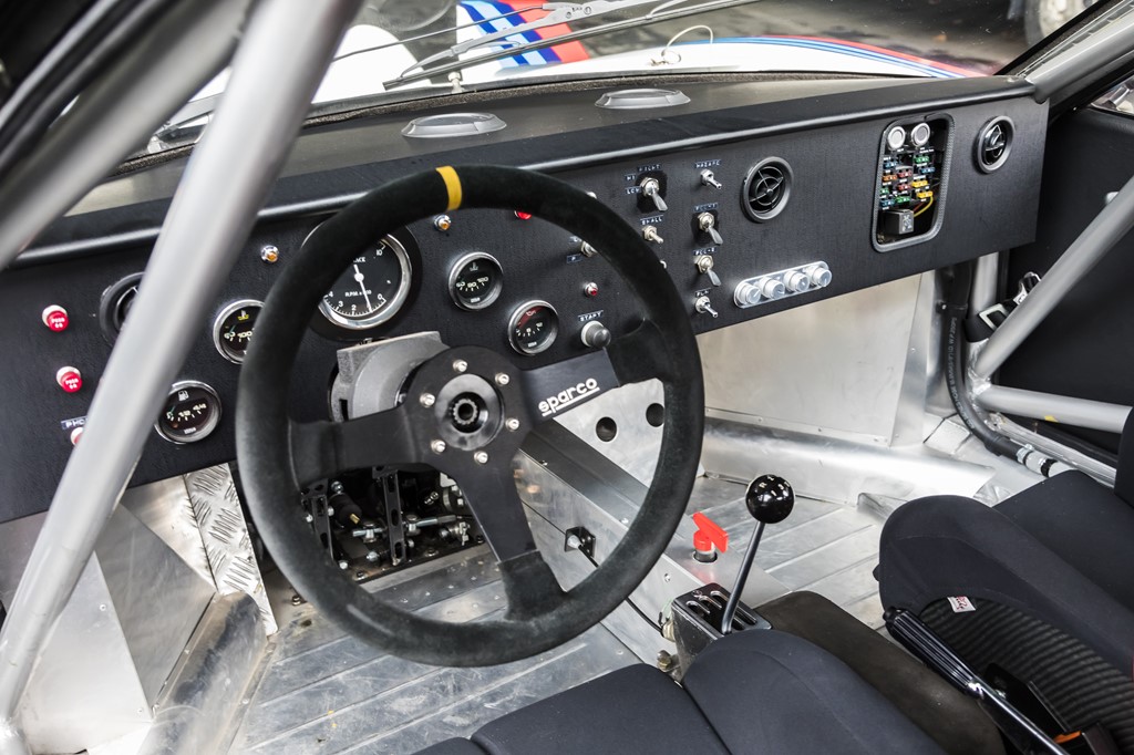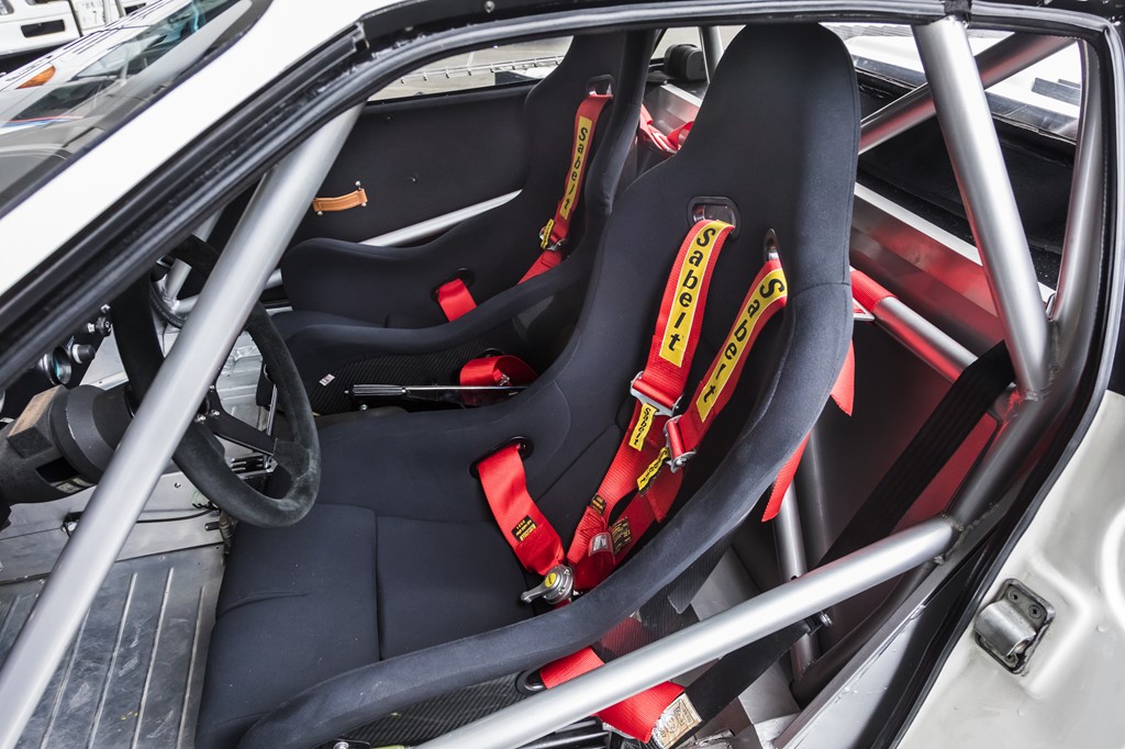 車内にはロールケージが張り巡らされる。乗り降りはかなり大変で、実際のラリーマシンのように、ステアリングを外して乗り込むスタイルながら街乗りもこなす。
