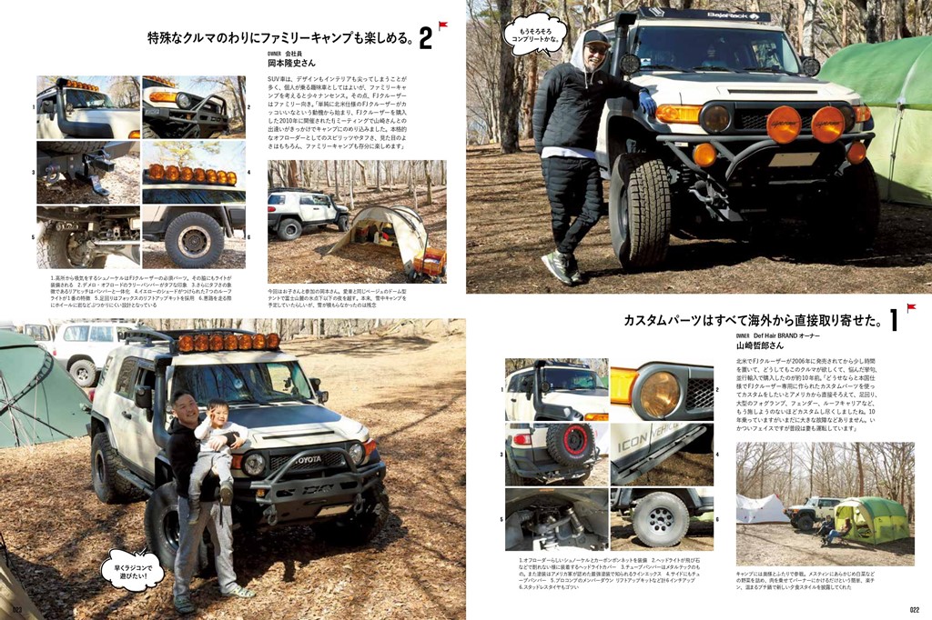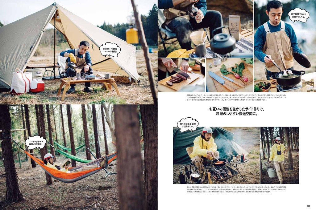 どこかに出かけてタープやテントを張って、普通にキャンプをするのは楽しい。でも、自分がいつも楽しんでいる趣味とともにキャンプをするともっと楽しい。巻頭では、そんな「趣味 × キャンプ」を満喫している遊びの達人たちの、リアルなキャンプスタイルを紹介。