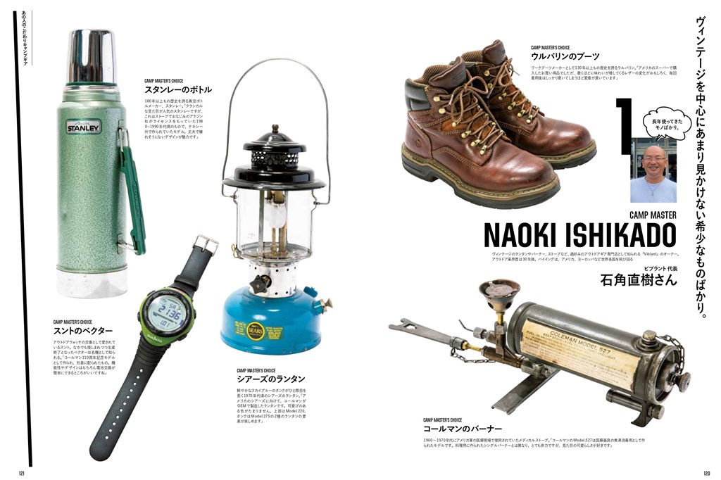 スタイルのある人は、どんなアウトドアライフを送っているのか10人のアパレル業界人たちの、私物キャンプ用品にも注目。使いこまれたヴィンテージ品から、最新モノまで、リアルなキャンプ用品の数々を紹介!