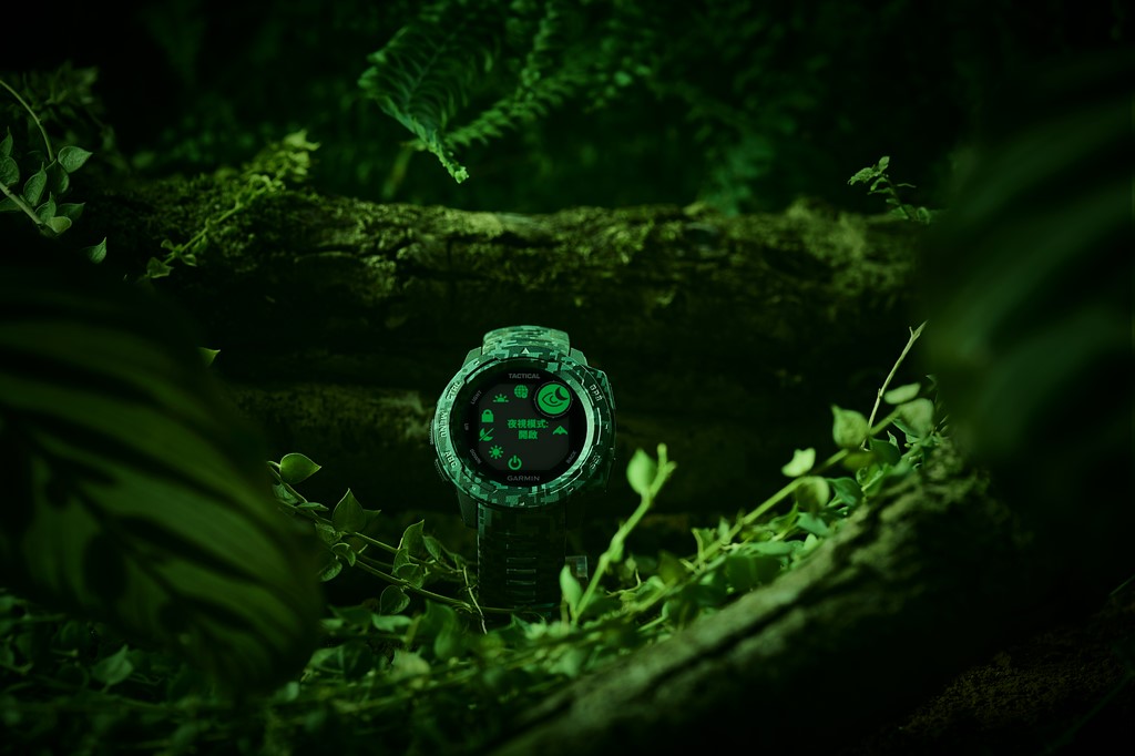 今回ピックアップしたガーミンの「INSTINCT TACTICAL」は、米国防総省が定めたMIL規格に準拠というミリタリーグレードである。使うシーンを選ばない頑丈さ、しかもGPSや高度計、気圧計、コンパスといった多機能性、そして屈強さを感じさせるミリタリーカラーの面構えと、身に着けるだけでワクワクしてくる。
