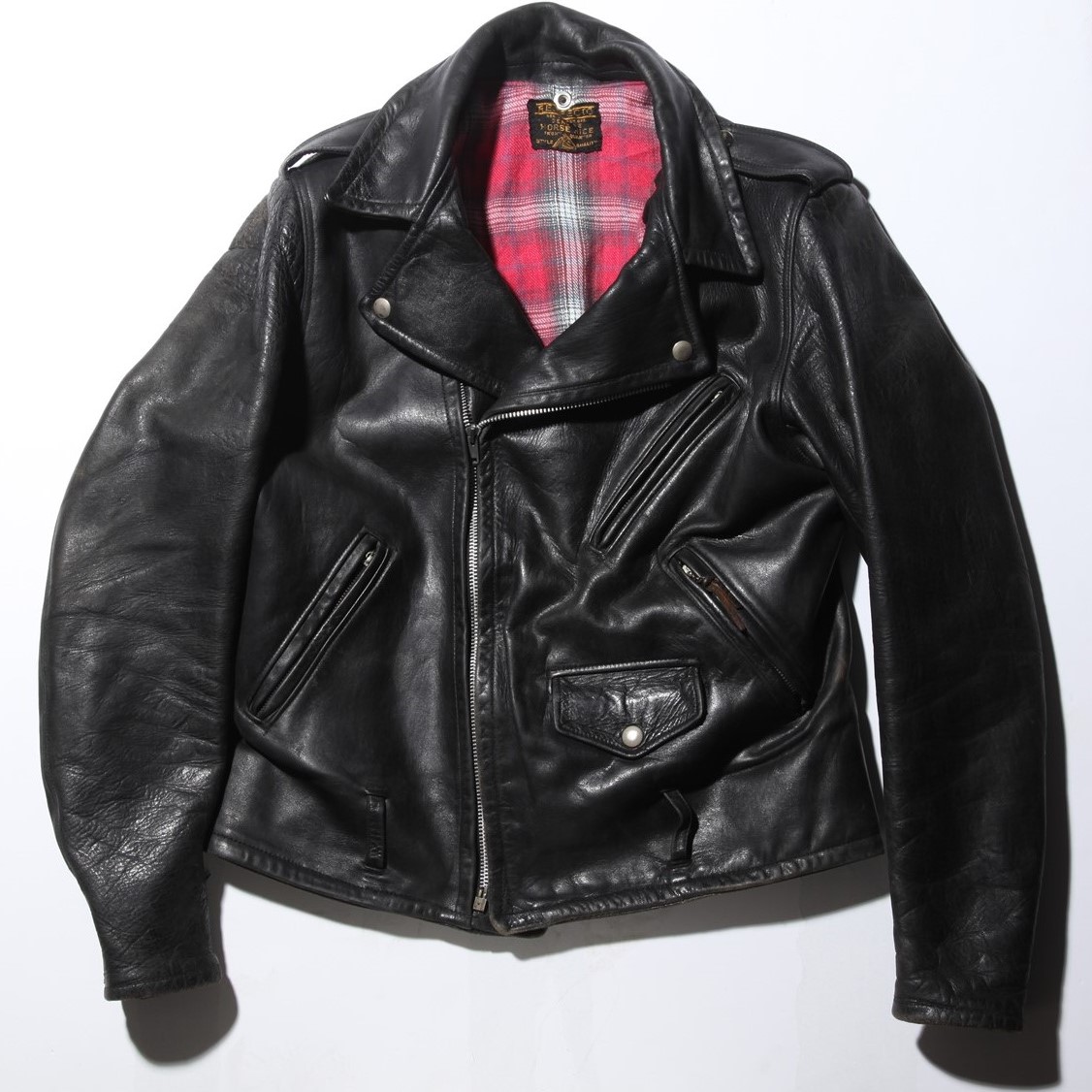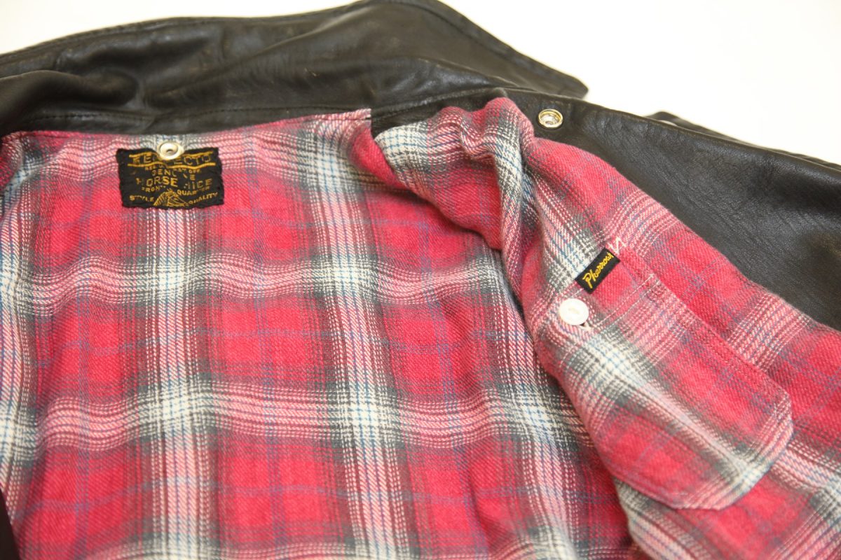 アームホール、身幅、肩幅などメスを入れた箇所多数。購入したままでは不格好なショットのワンスターが見違えるようにシャープなシルエットへと変貌を遂げた。ライニングには自身が長年愛用したネルシャツを生地として使用し、ブランドネームなども移植した。