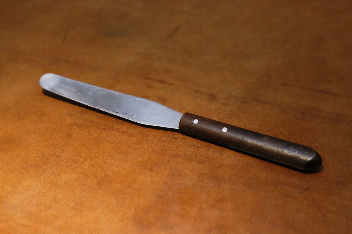 染料を入れたのち半日以上、染料のしみ込んだ革を乾燥させ色を定着させる。